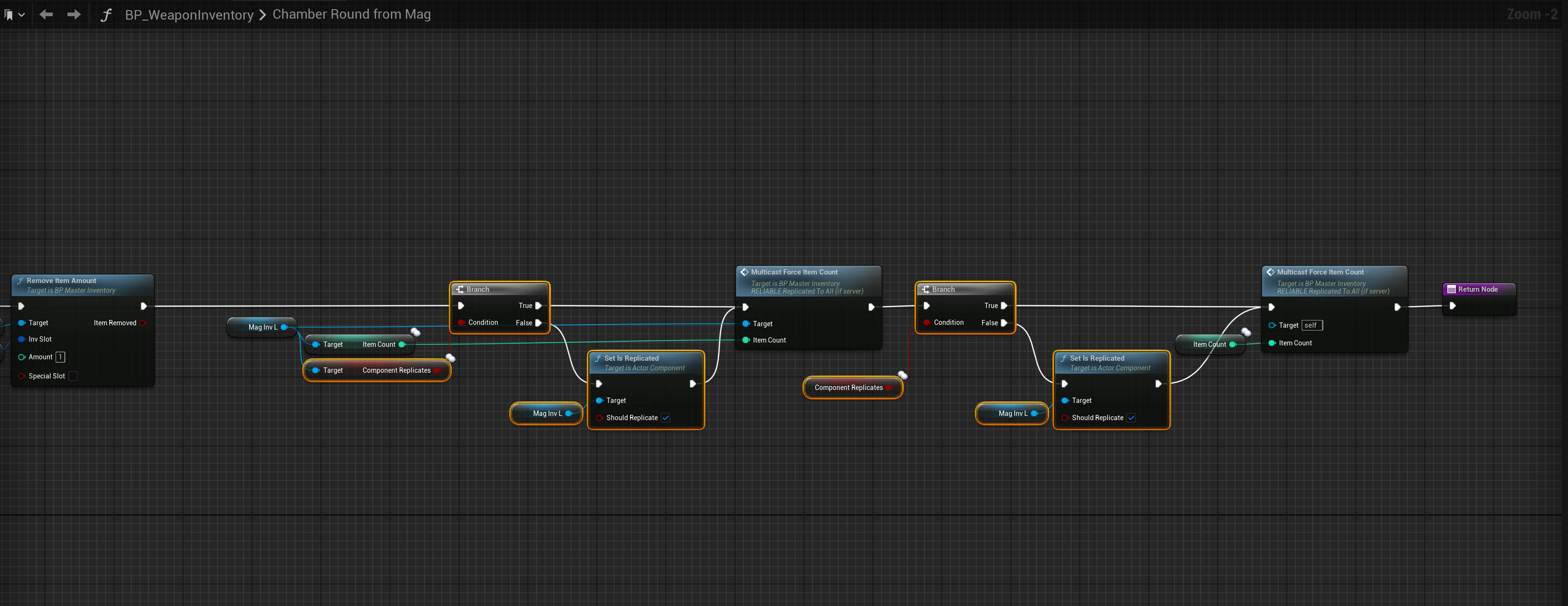 SGK V2 – Fixed Dedicated Server Error Go to the BP_WeaponInventory then open the ChamberRoundFromMag function and add the highlighted nodes shown below.