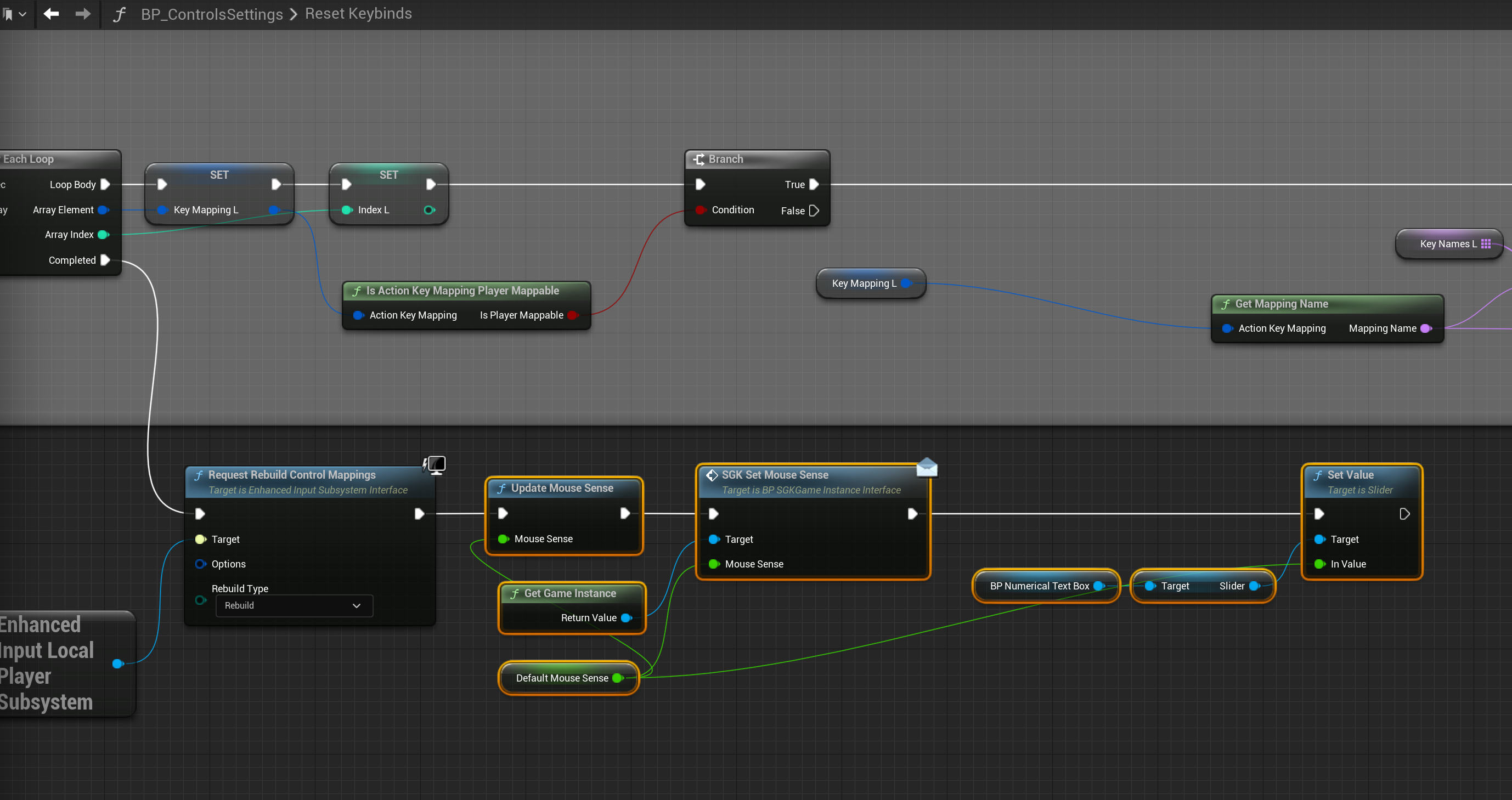 SGK V2 – Fixed defaults button in controls not resetting mouse sense correctly Go to the BP_ControlsSettings and create a new variable called Default Mouse Sense and set its type to Float, then set its Default Value to 1. Add the highlighted nodes shown in the image below, location at the top of the image.