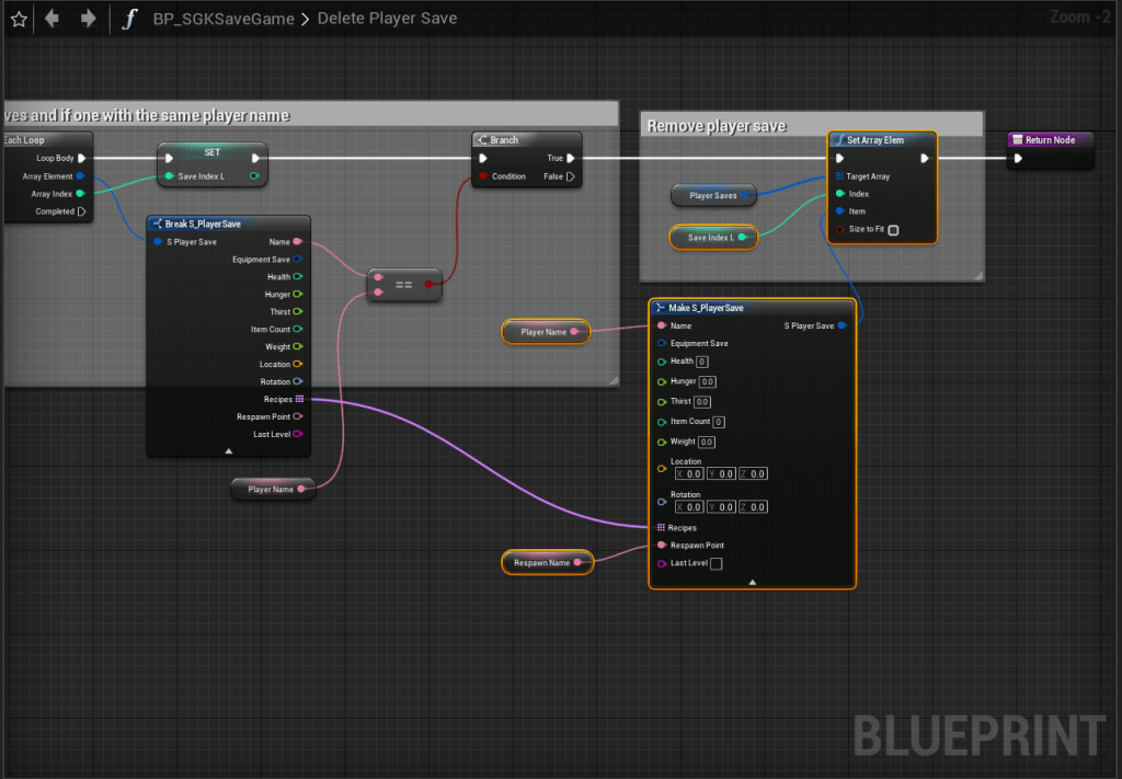 SGK V2 – Fixed disconnect on respawn screen clearing respawn point Copy the video below, locations of the blueprints at the top of the video. Add the highlighted nodes shown in the image below, location at the top of the image.