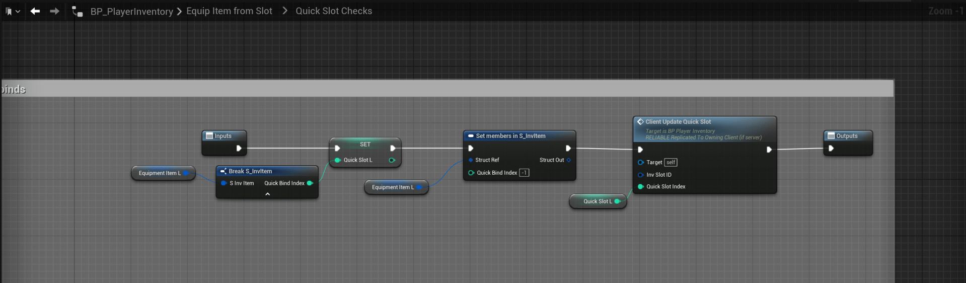 Then goto the EquipItemFromSlot function and open the QuickSlotChecks and make your code look like the image below.