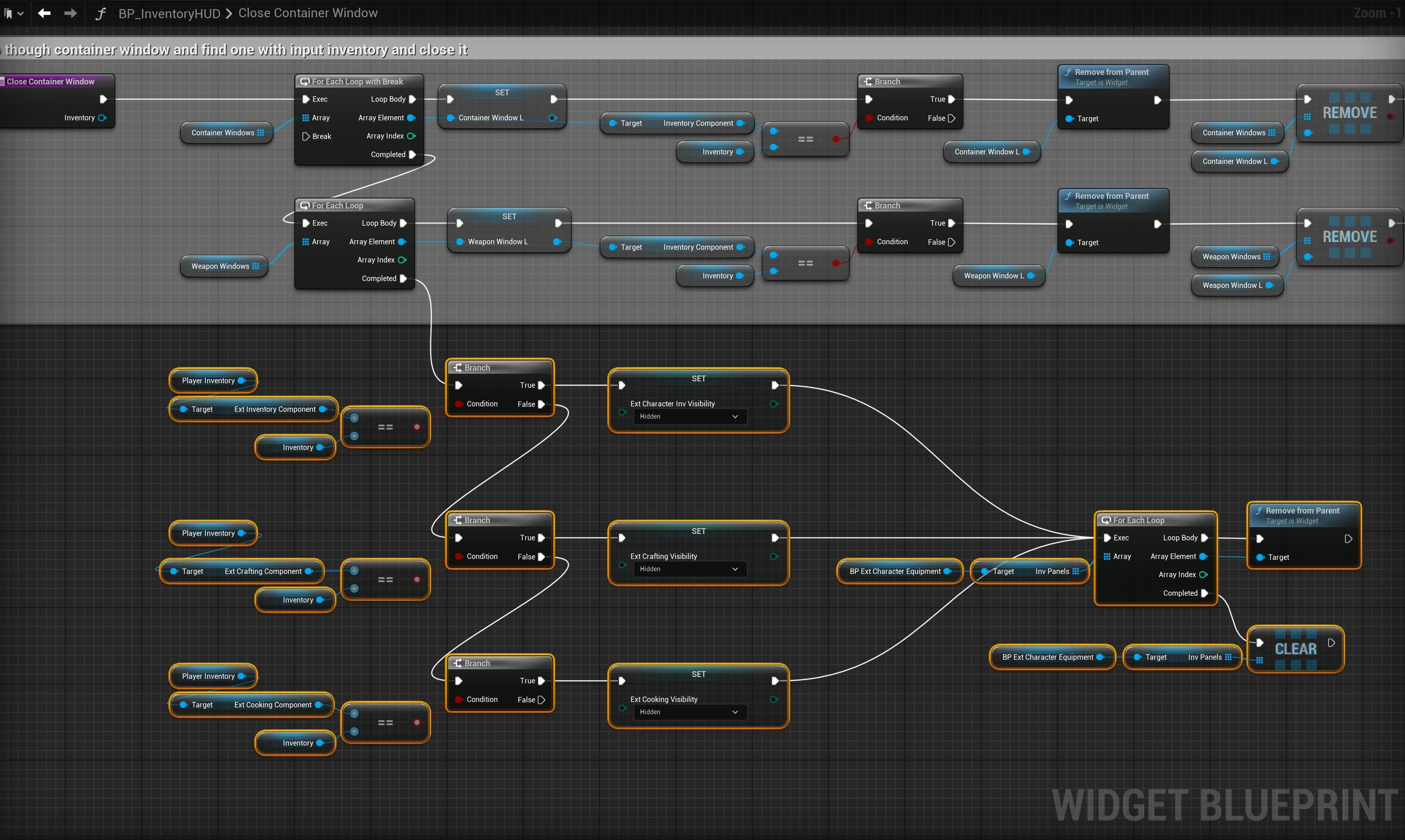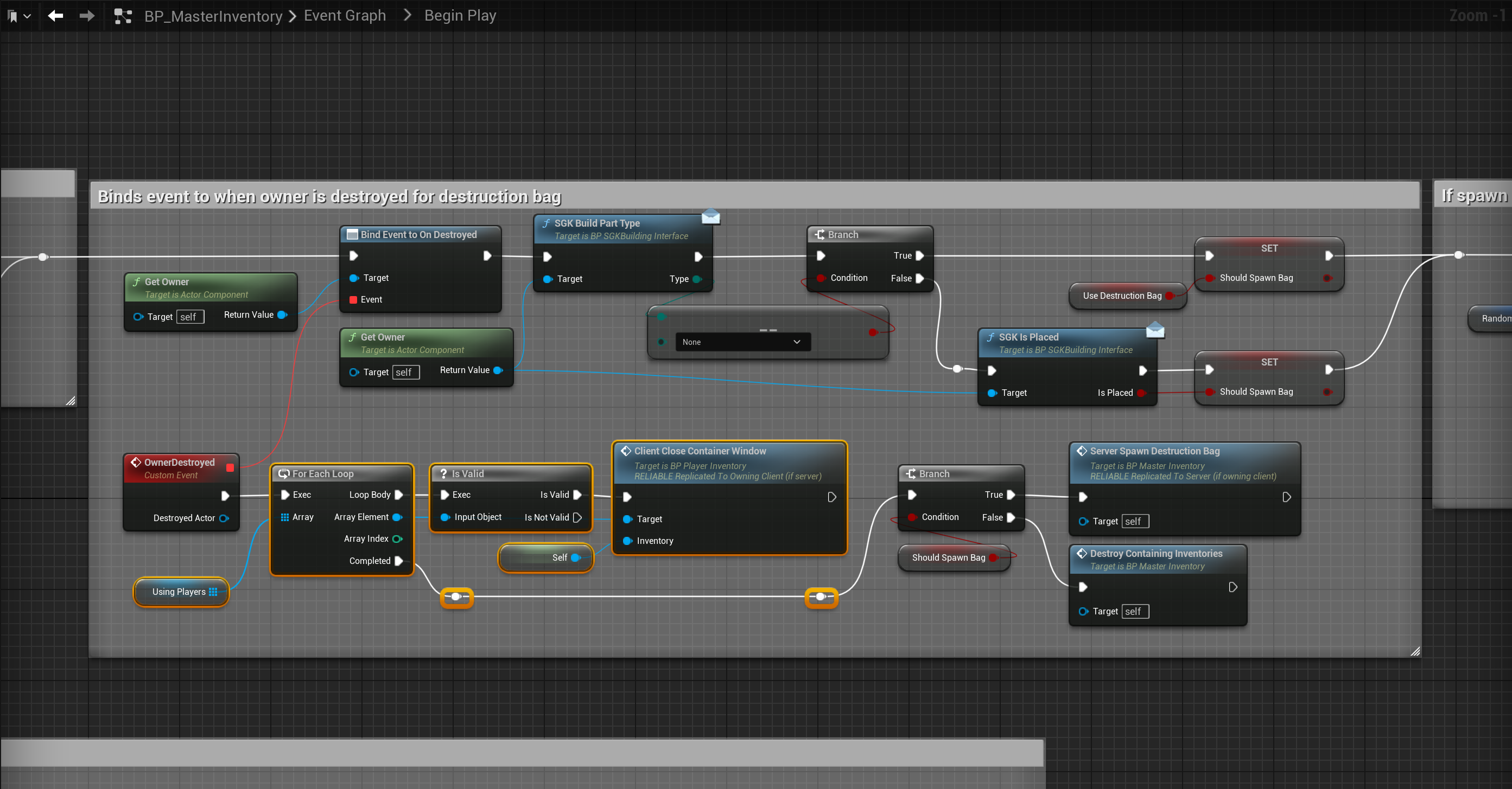 SGK V2 – Fixed External Inventories Not Closing on Destroy Go to the BP_InventoryHUD and add the highlighted nodes shown in the image below. Then go to the BP_MasterInventory then open the BeginPlay collapsed node and add the highlighted nodes shown in the image below.