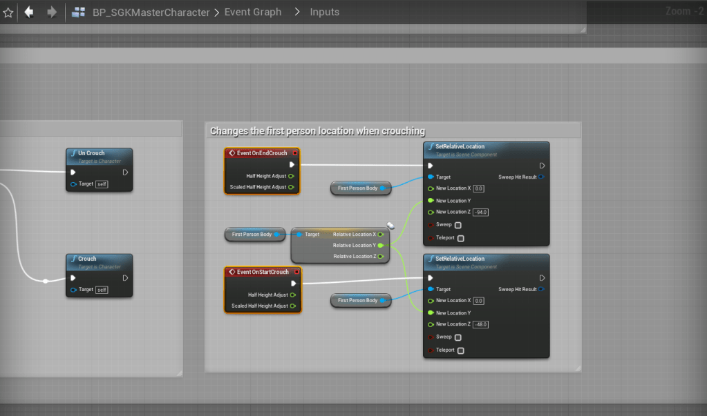SGK V2 – Fixed first person body un crouching Add the highlighted nodes shown in the image below, location at the top of the image.