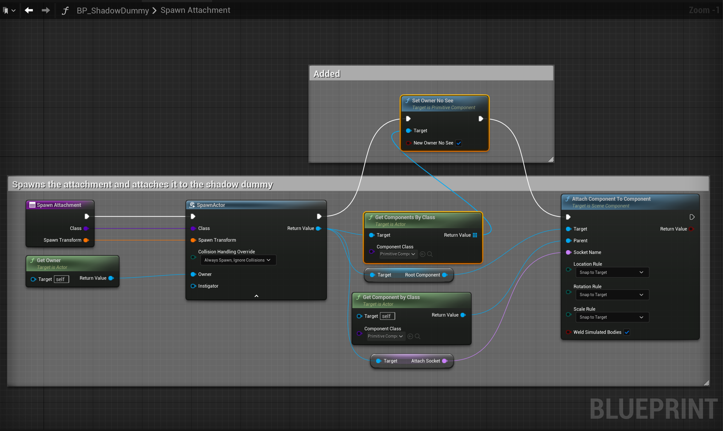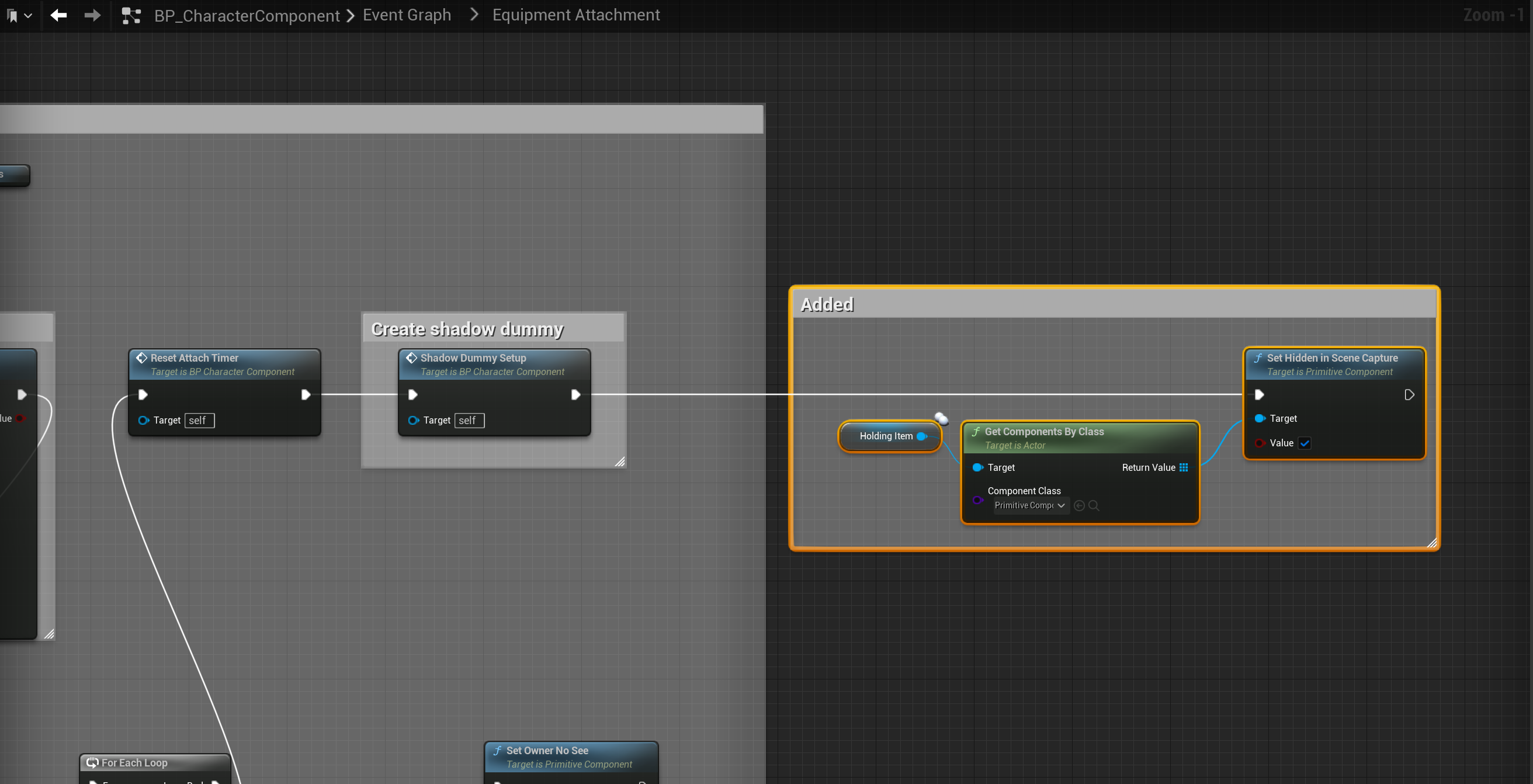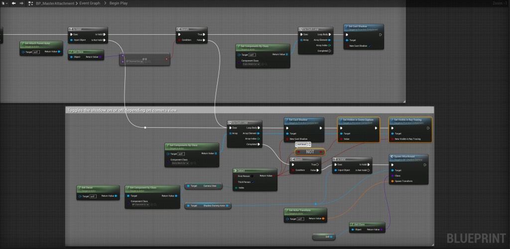 Next go to the BP_MasterAttachment and in the Begin Play collapsed node copy the video below.