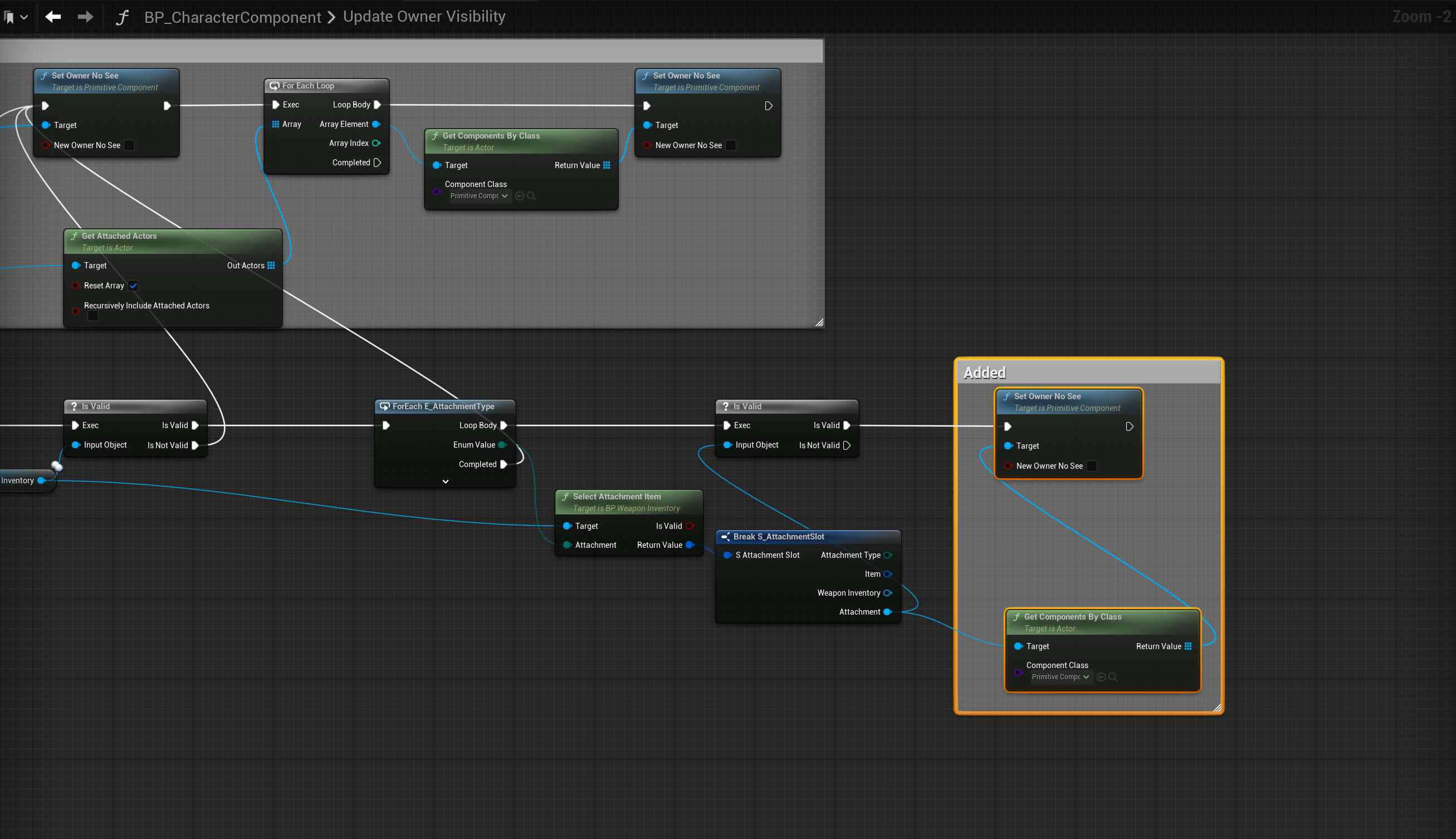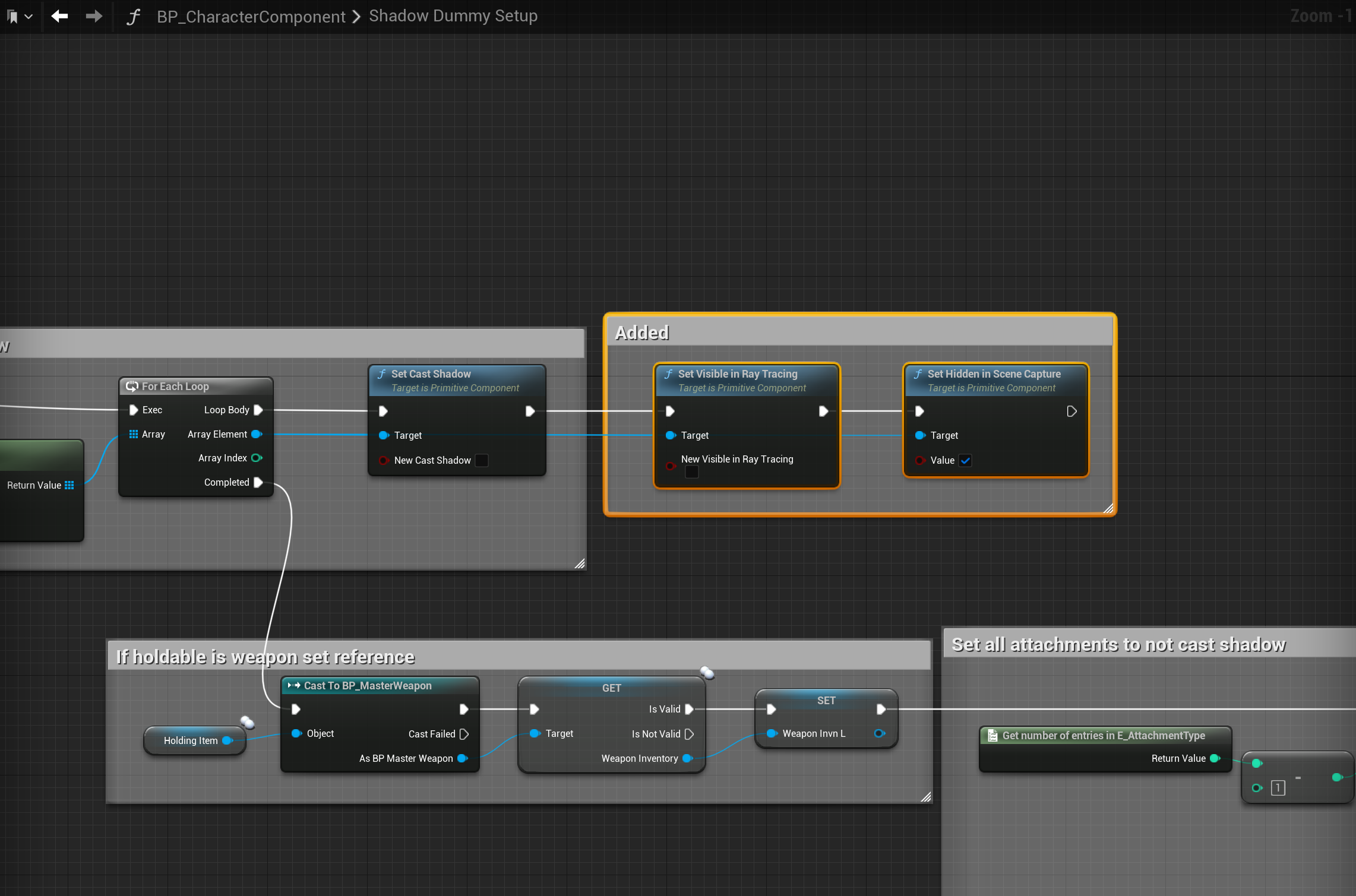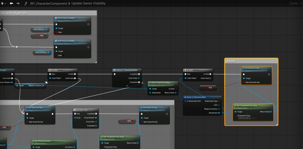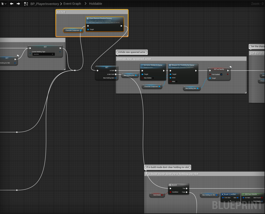 Next go to the BP_PlayerInventory then to the Holdable collapsed node in the Event Graph, then make the changes shown in the image below.