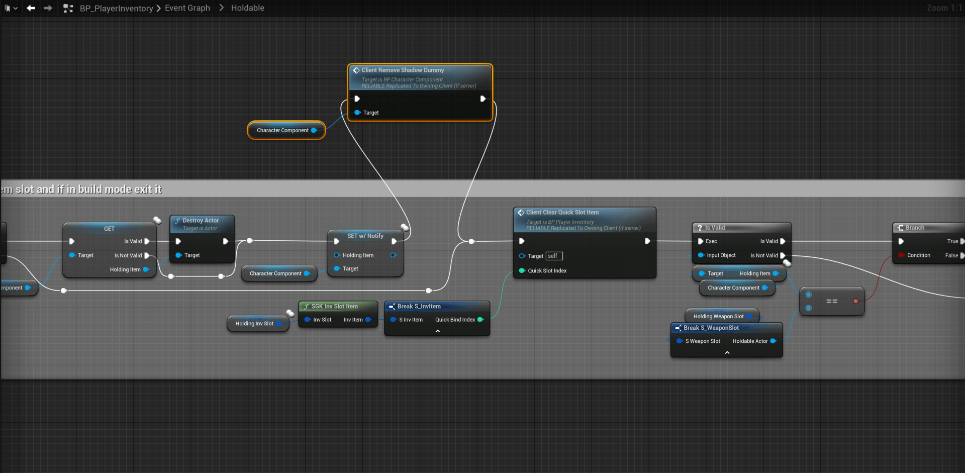 SGK V2 – Fixed Grenade Remaining In Hand on Death After Throw Open the BP_PlayerInventory then open the Holdable collapsed node and add the highlighted nodes shown in the image below.