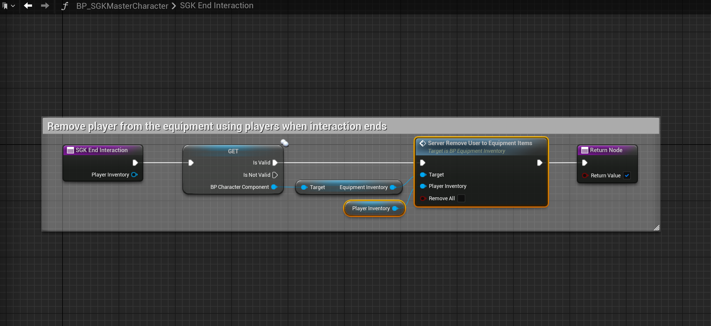 SGK V2 – Fixed incorrect node in character End Interact Go to the BP_SGKMasterCharacter then open the SGK End Interaction Interface function and copy the image below.