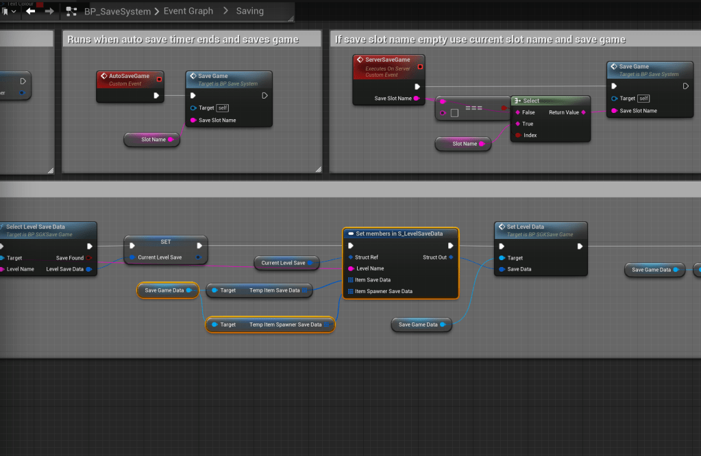 Then go to the BP_SaveSystem and then to the Saving collapsed node in the Event Graph and copy the image below.