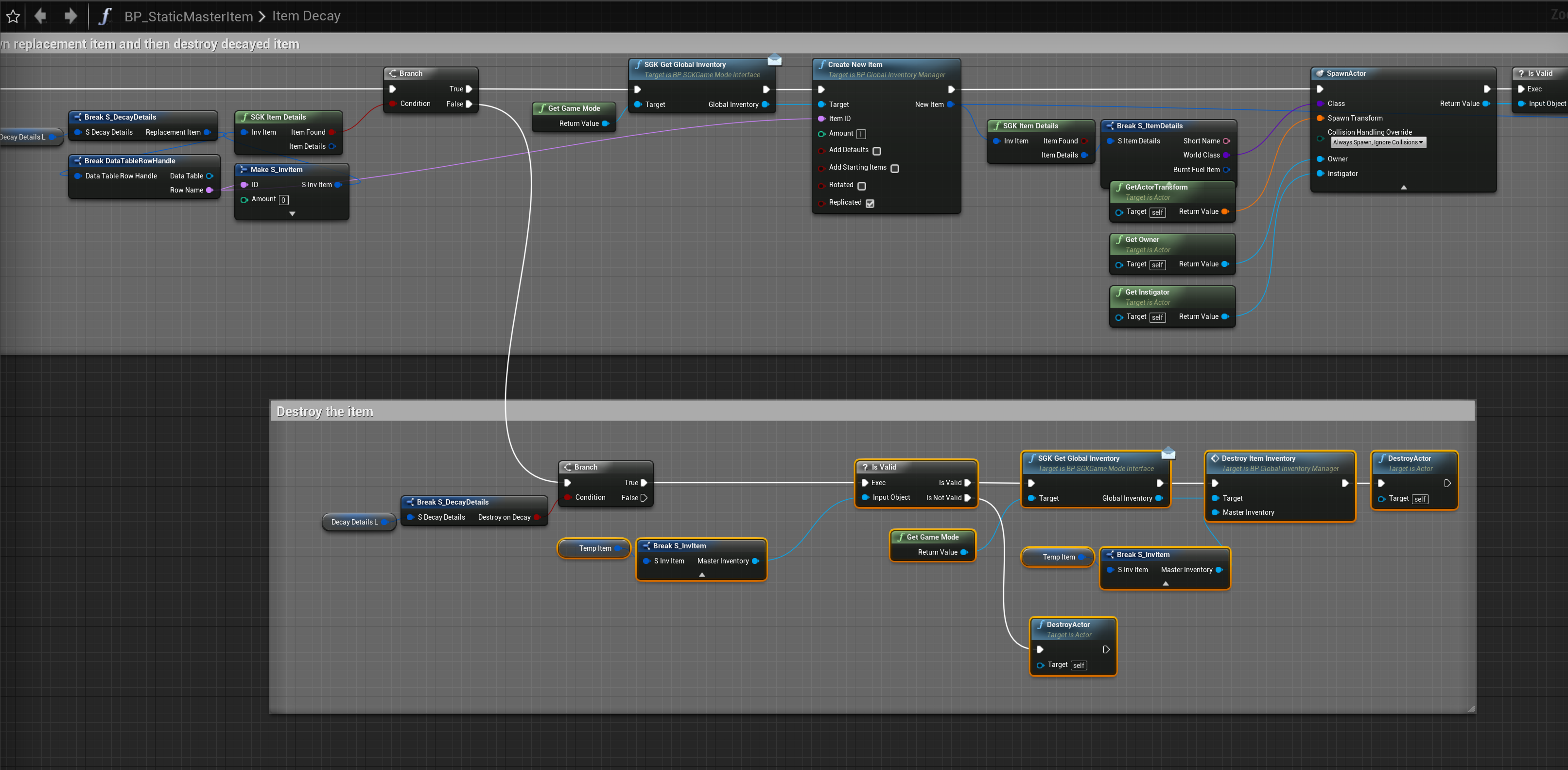 SGK V2 – Fixed item decay not removing inventory components Add the highlighted nodes shown in the image below, location at the top of the image.