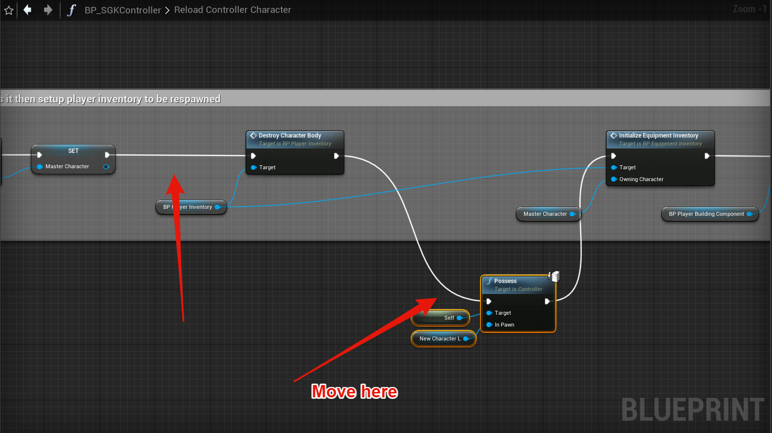 SGK V2 – Fixed load save in game not possessing character correctly Add the highlighted nodes shown in the image below, location at the top of the image.