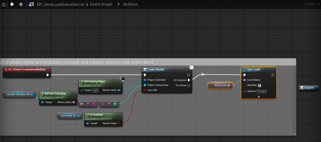 Next go to the BP_HostLoadGameServer and create a new variable called SaveLevel and set its type to Name. Then copy the image below.