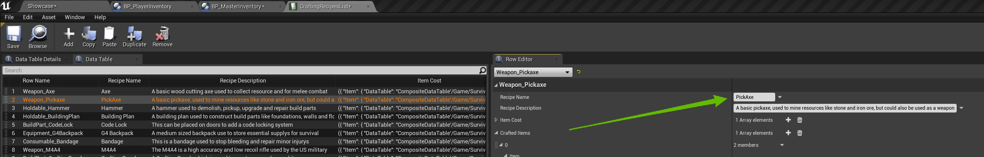 SGK V2 – Fixed pickaxe crafting recipe Go to the CraftingRecipesList and copy the video below. Then set the Recipe Name to Pickaxe like image below.