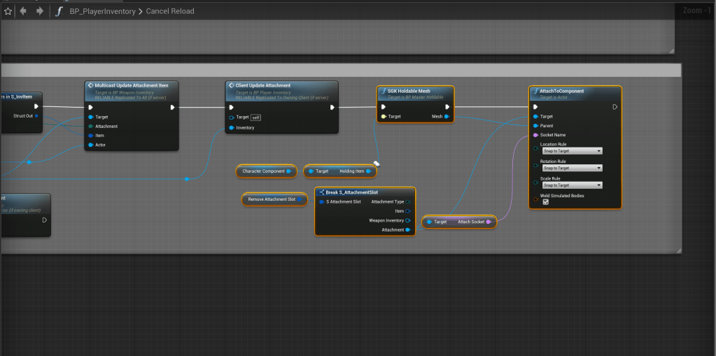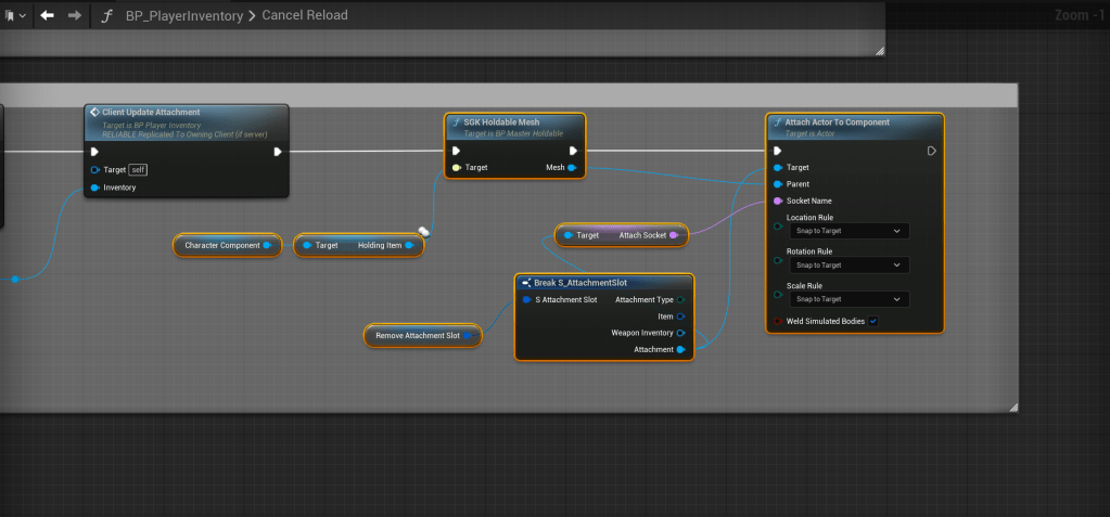 SGK V2 – Fixed possible issue with magazine not attaching to weapon on cancel reload Add the highlighted nodes shown in the image below, location at the top of the image. Unreal Engine 4 Below is for Unreal Engine 5 projects. Unreal Engine 5