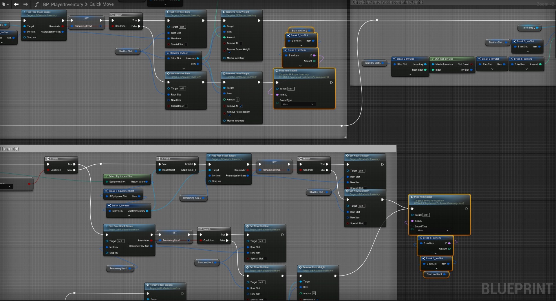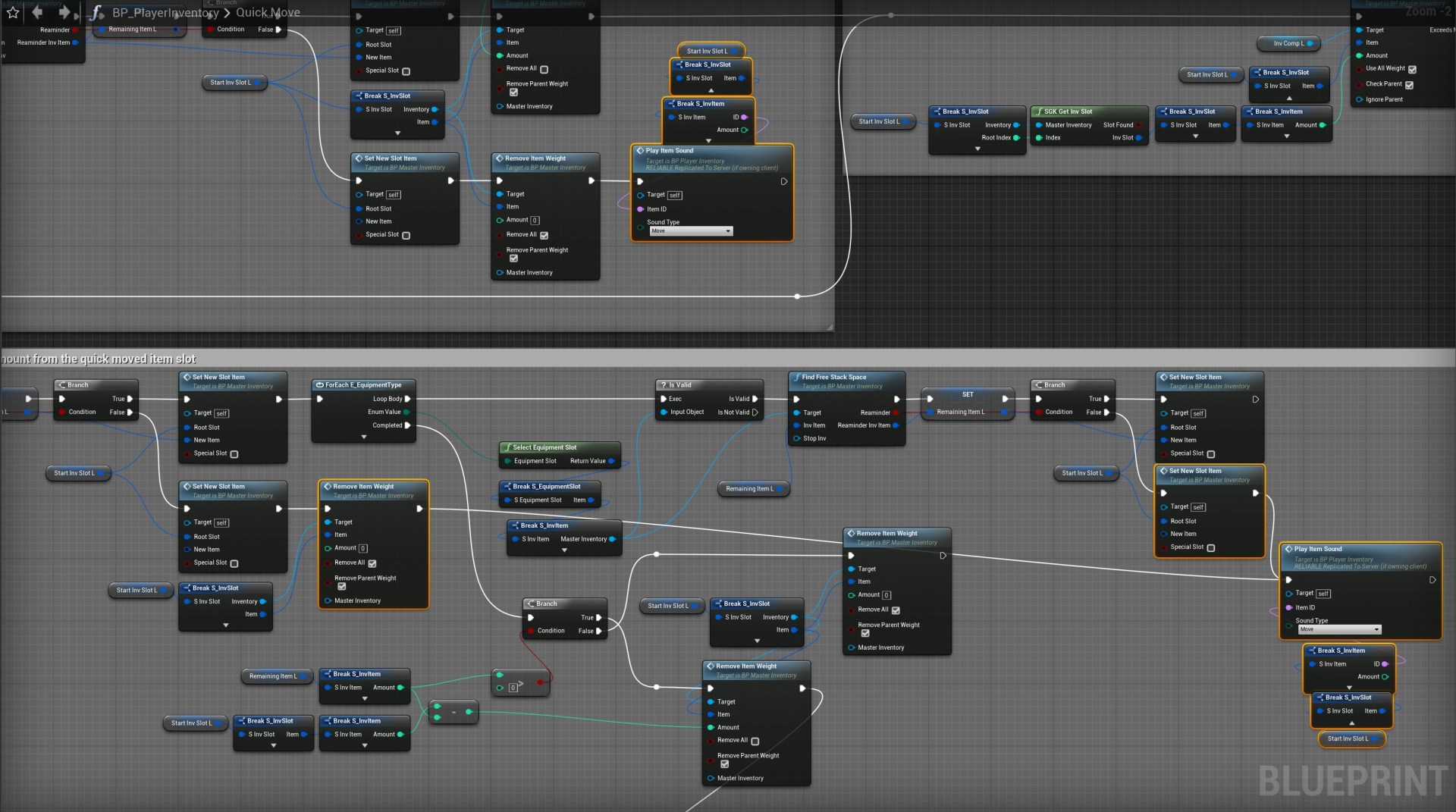 Open the BP_PlayerInventory then open the QuickMove function and add the highlighted nodes shown in the image below.