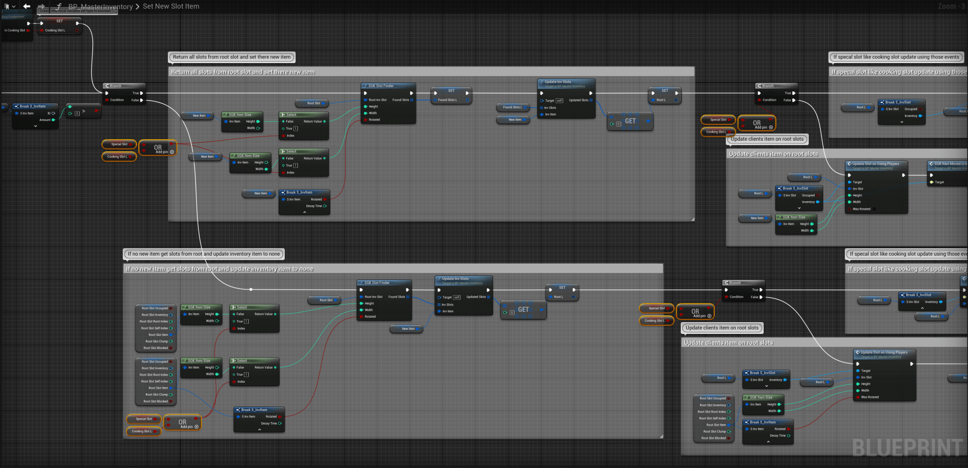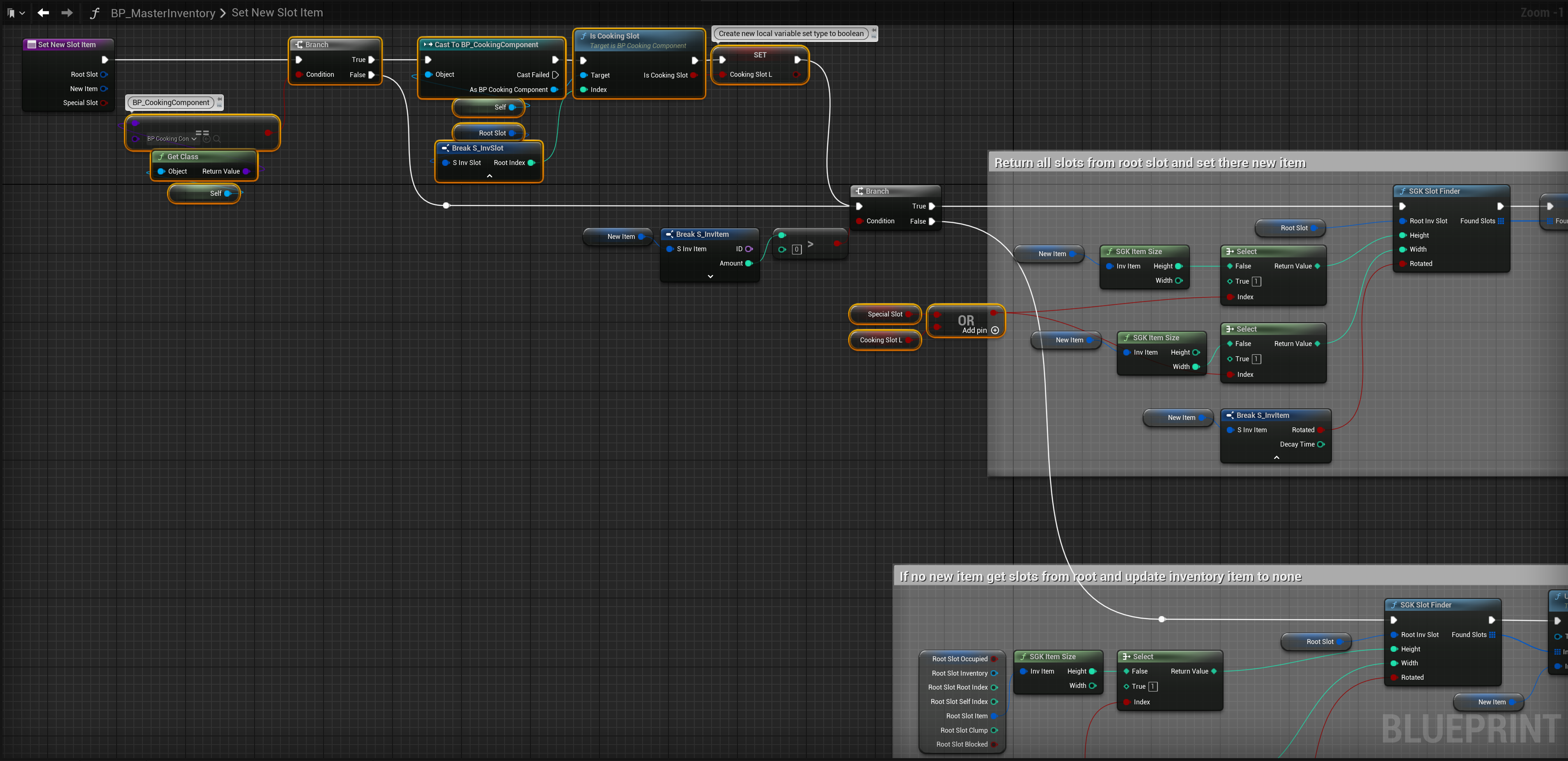 SGK V2 – Fixed Quick Move Stacking Breaking Cooking Slots Open the BP_MasterInventory then open the SetNewSlotItem function and copy the images below.