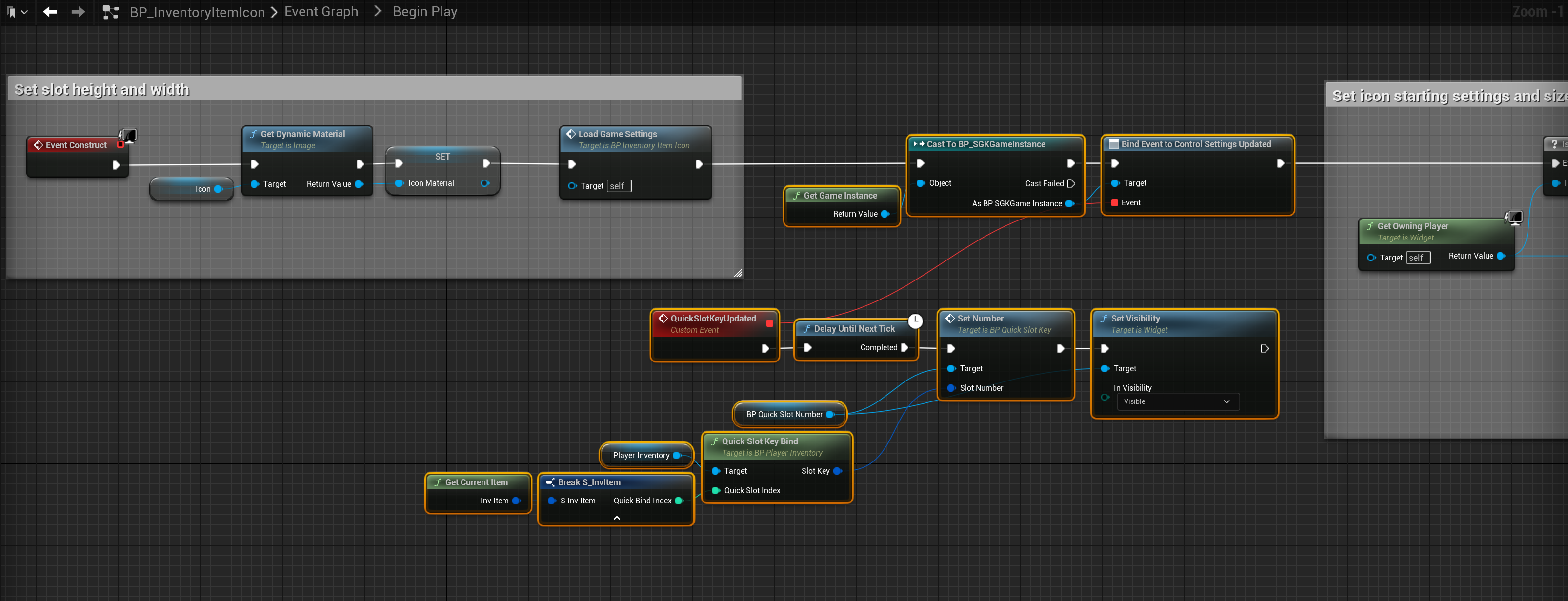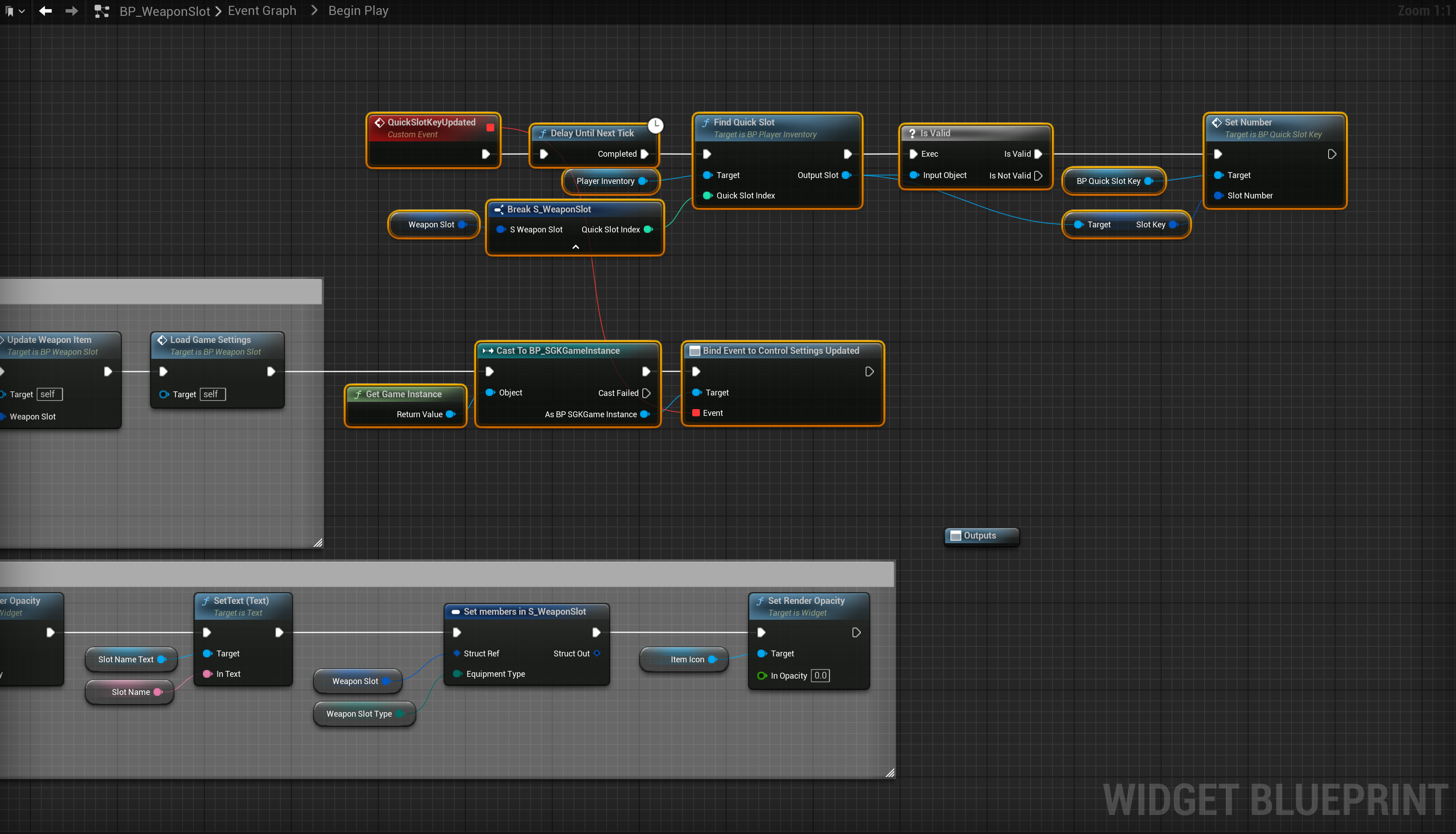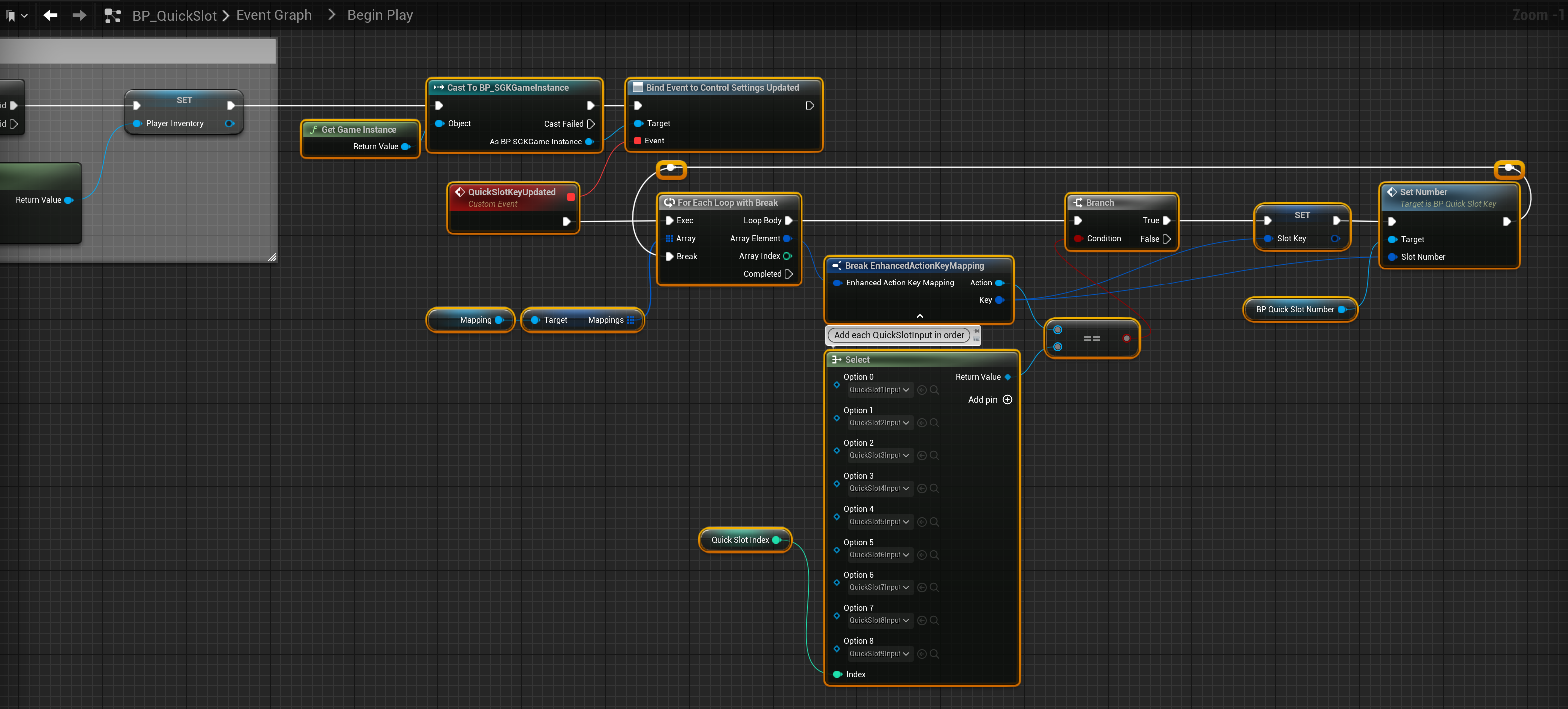 SGK V2 – Fixed Quick Slot Keybind Text Not Updating Start by copying the video below. Next add the highlighted nodes shown in the images below, locations at the tops of the screenshots. Next open the BP_QuickSlot blueprint and copy the video below. Next add the nodes shown in the image below.
