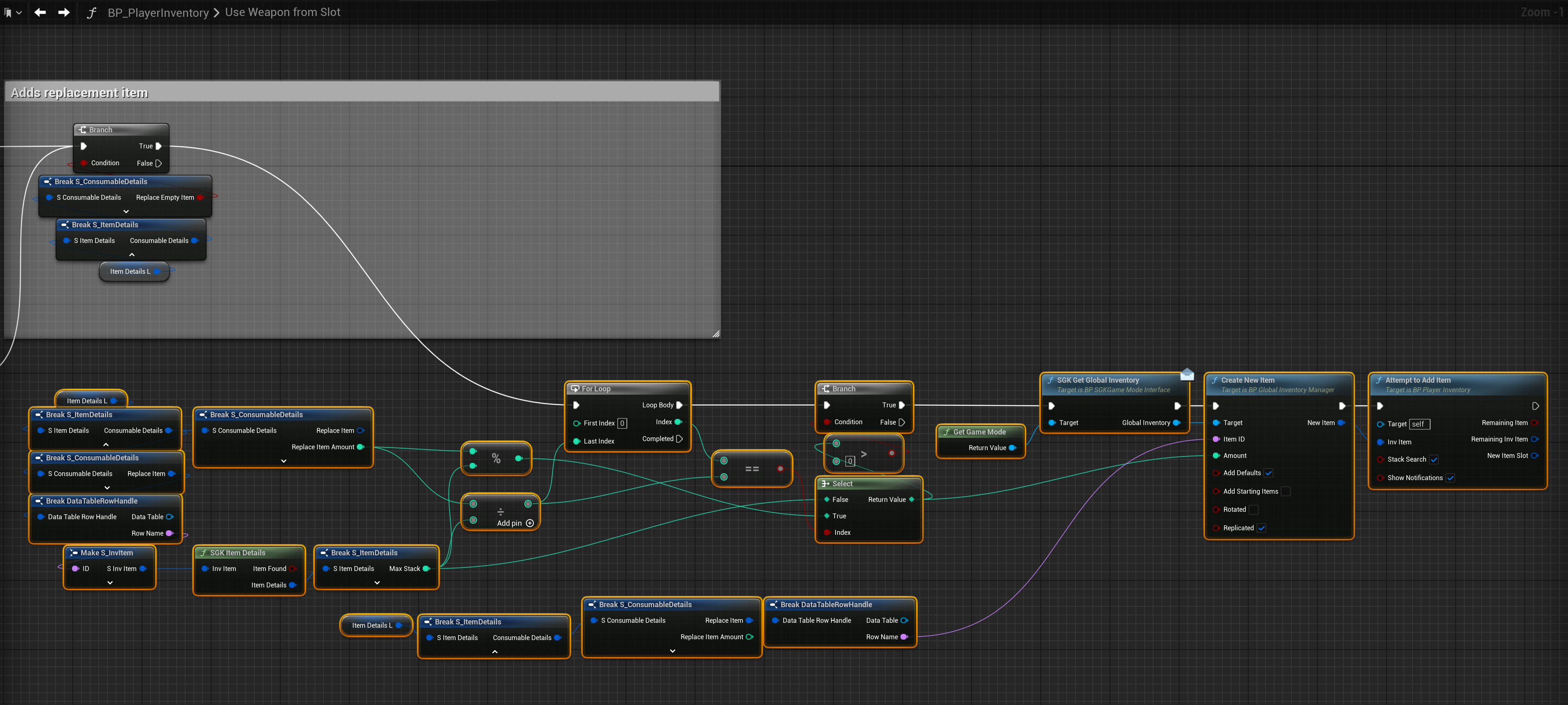 Open the BP_PlayerInventory then open the UseWeaponfromSlot function and add the code in the image below.