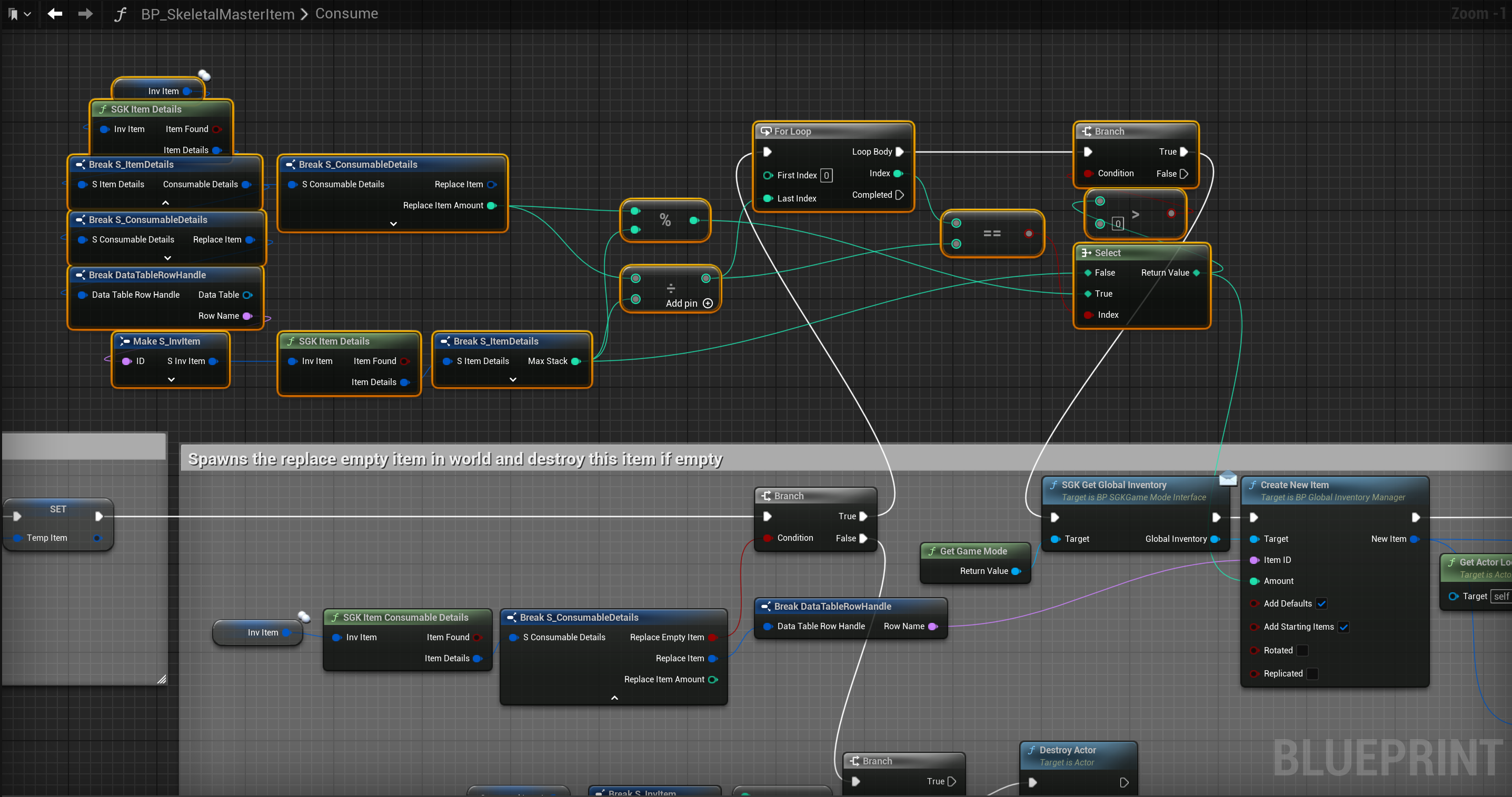 Then open the BP_StaticMasterItem go to the Consume function and add the code in the image below.
