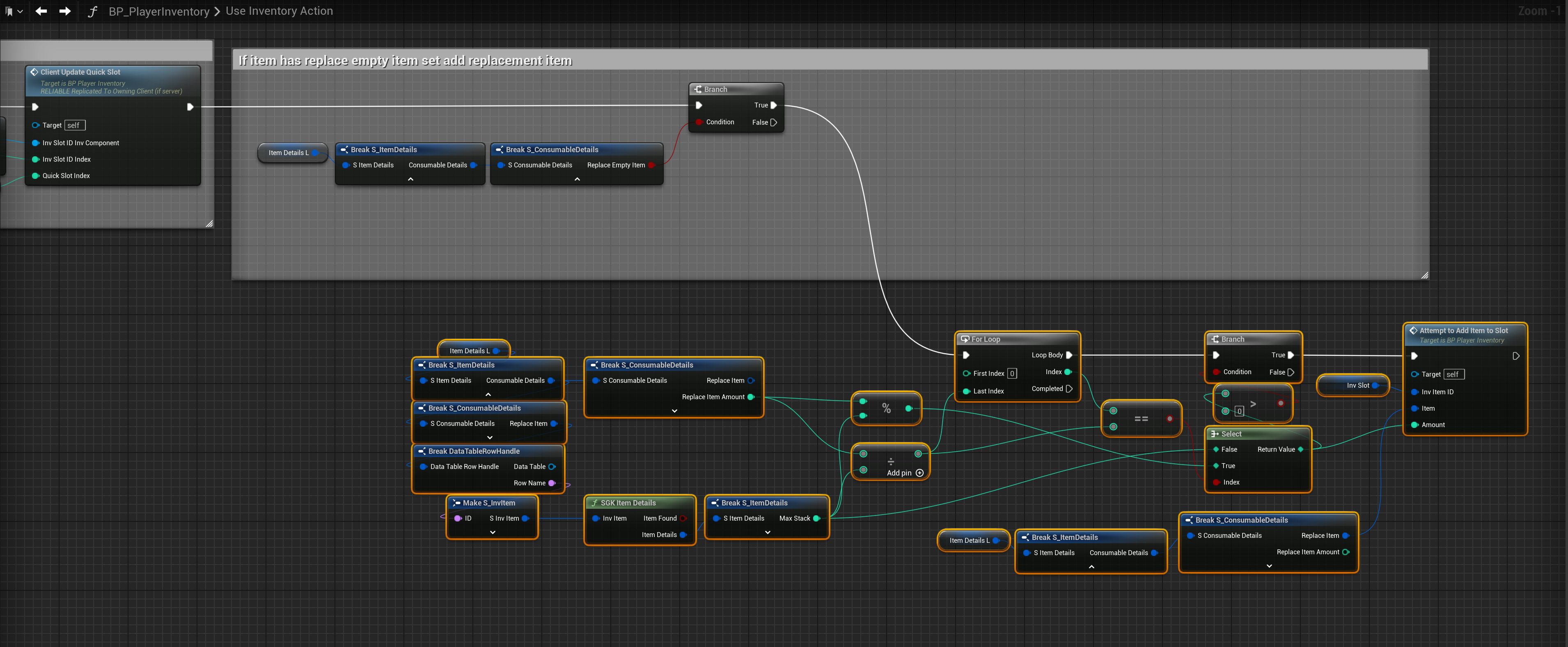 Next go to the UseInventoryAction function and add the nodes shown in the image below.
