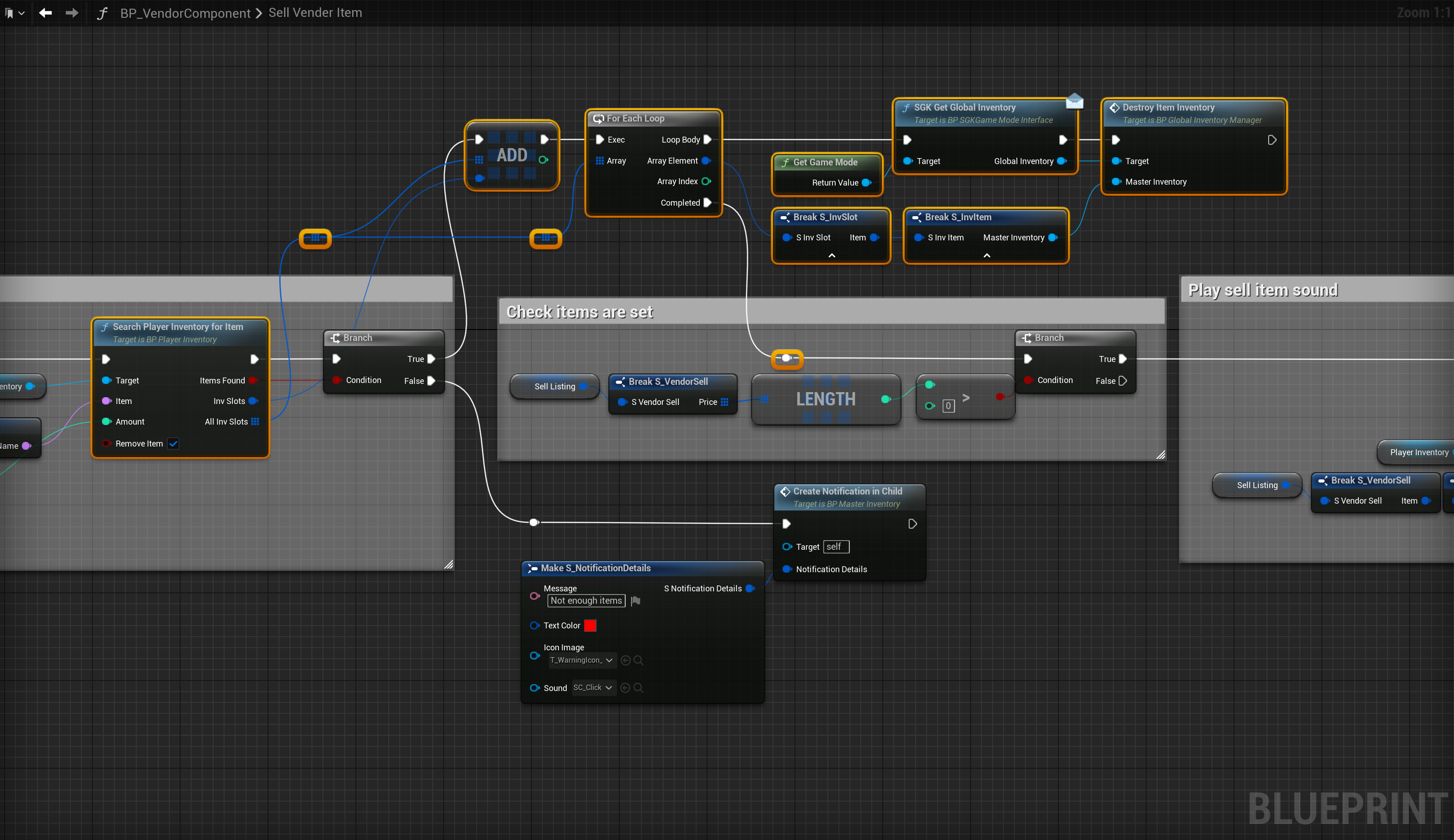 SGK V2 – Fixed Selling Container Items to Vendors Open the BP_VendorComponent and then go to the SellVenderItem function, then add the highlighted nodes shown in the image below.