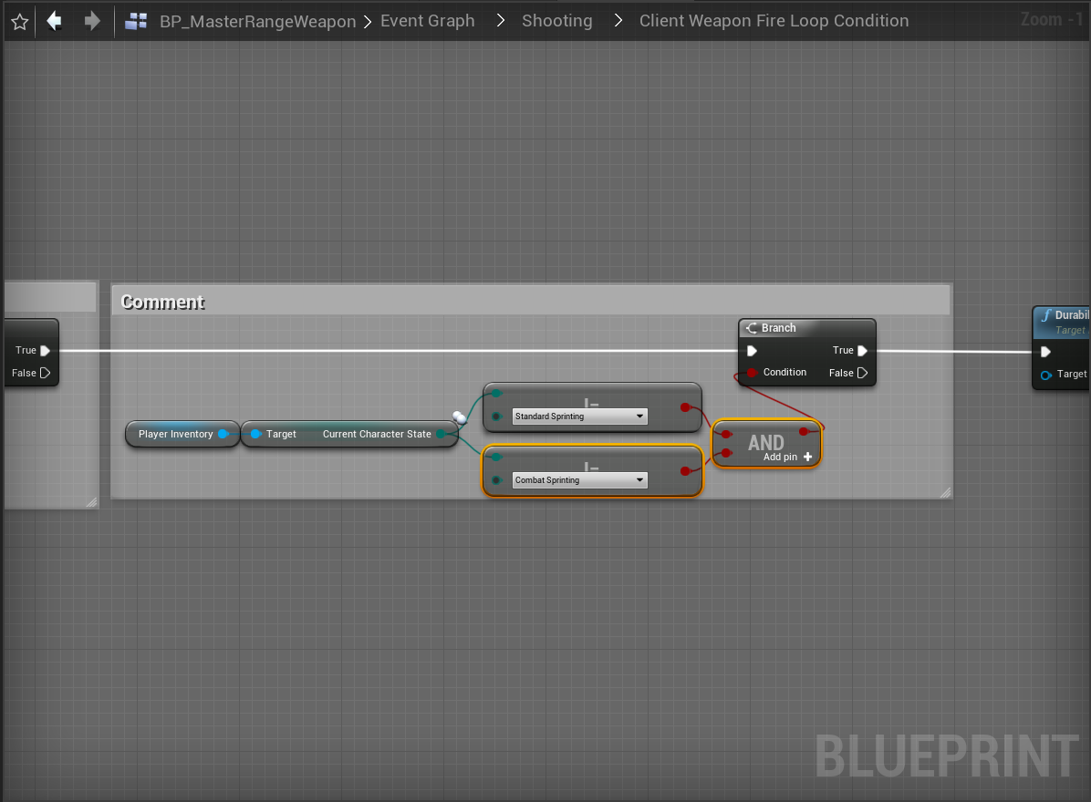 SGK V2 – Fixed shooting while sprinting Add the highlighted nodes shown in the image below, location at the top of the image. You may already have the changes in the video below, but if not copy the video below to add them.