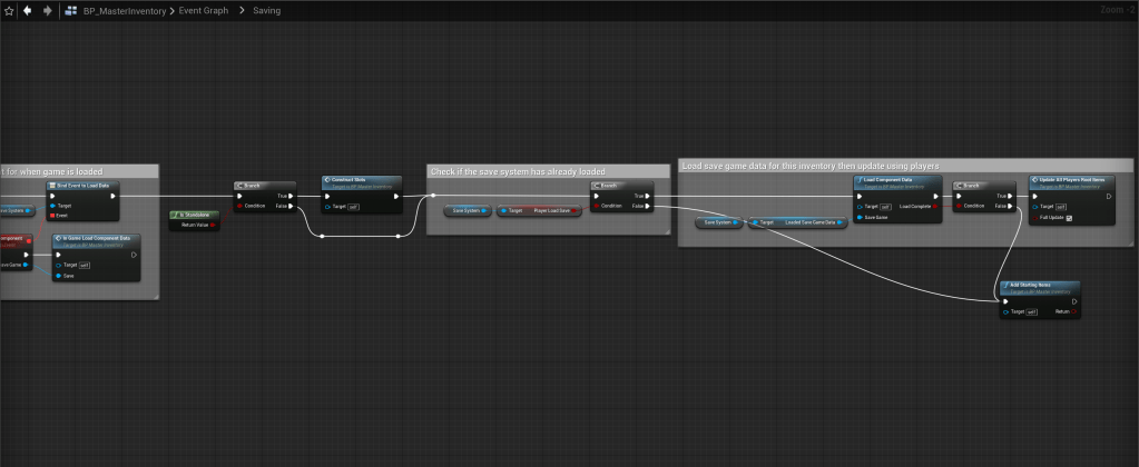 SGK V2 – Fixed single player pockets not loading save items Copy the video below in the BP_MasterInventory in the Saving collapsed node. When you done it should look like the image below.