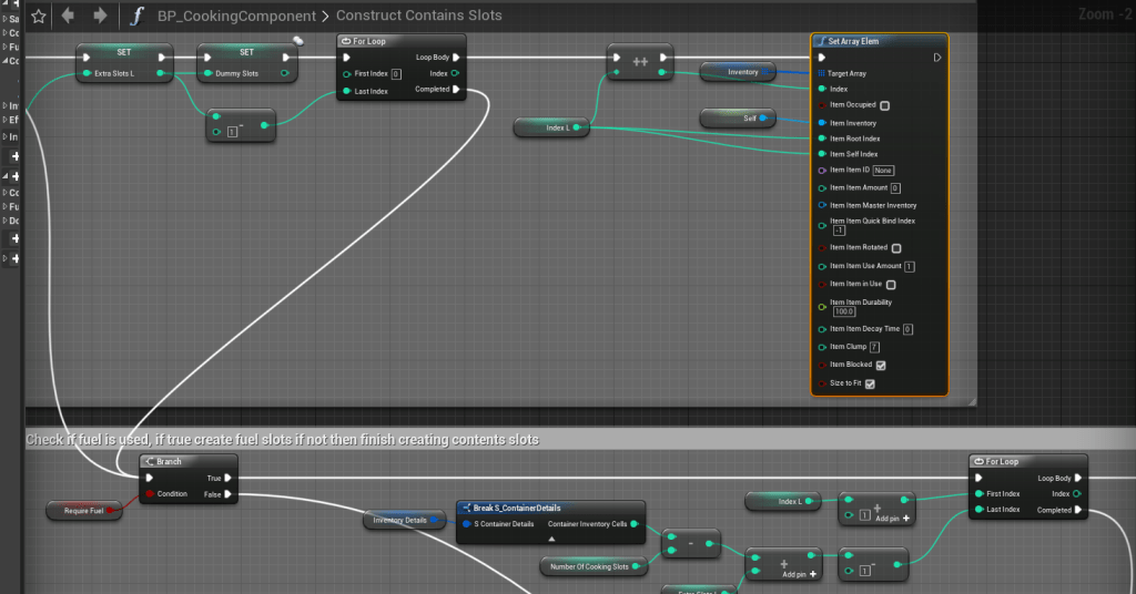 SGK V2 – Fixed splitting not working correctly in cooking component Add the highlighted nodes shown in the image below, location at the top of the image. Tick the Item Blocked pin on the highlighted node.