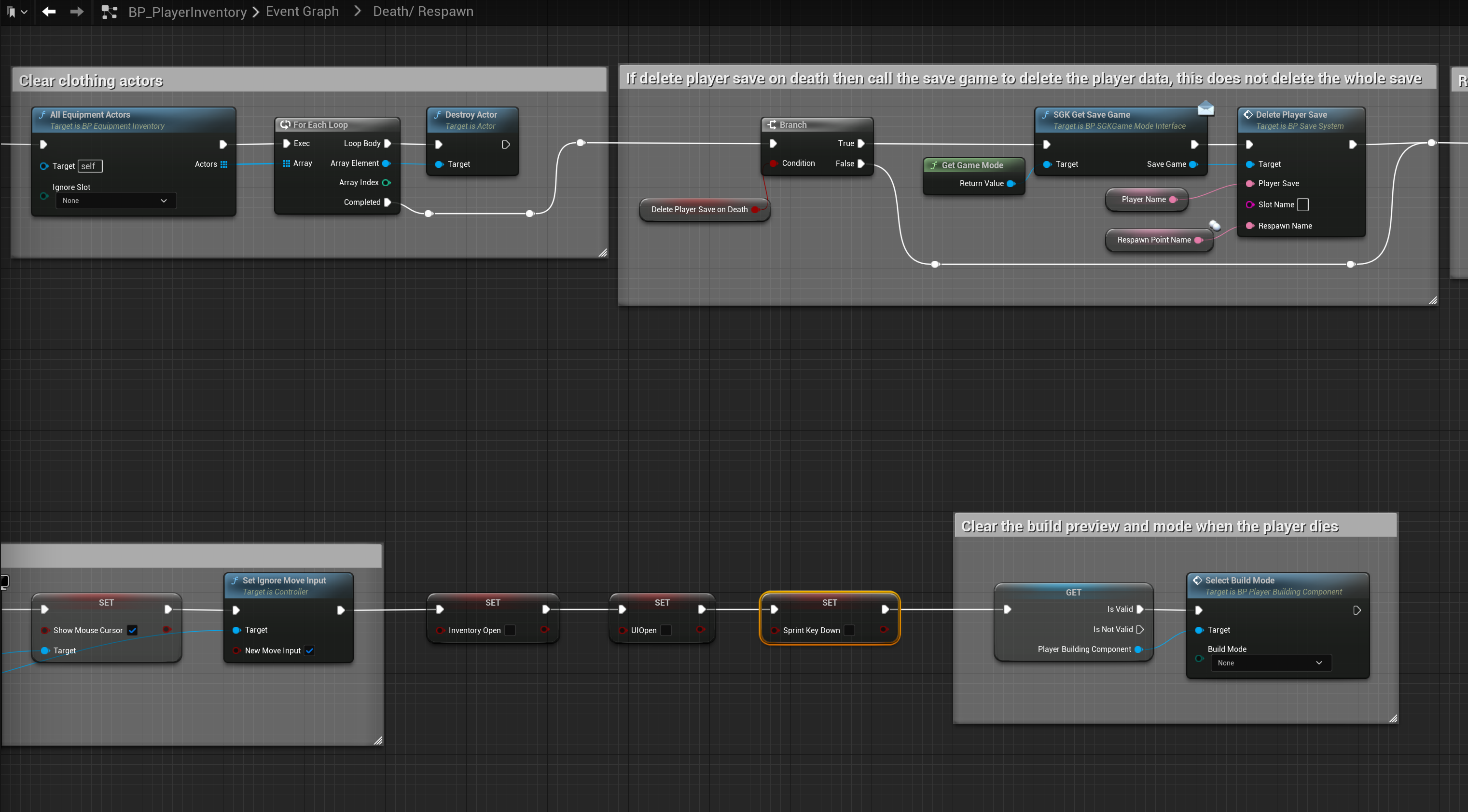 SGK V2 – Fixed sprint stuck on after death Add the highlighted nodes shown in the image below, location at the top of the image.