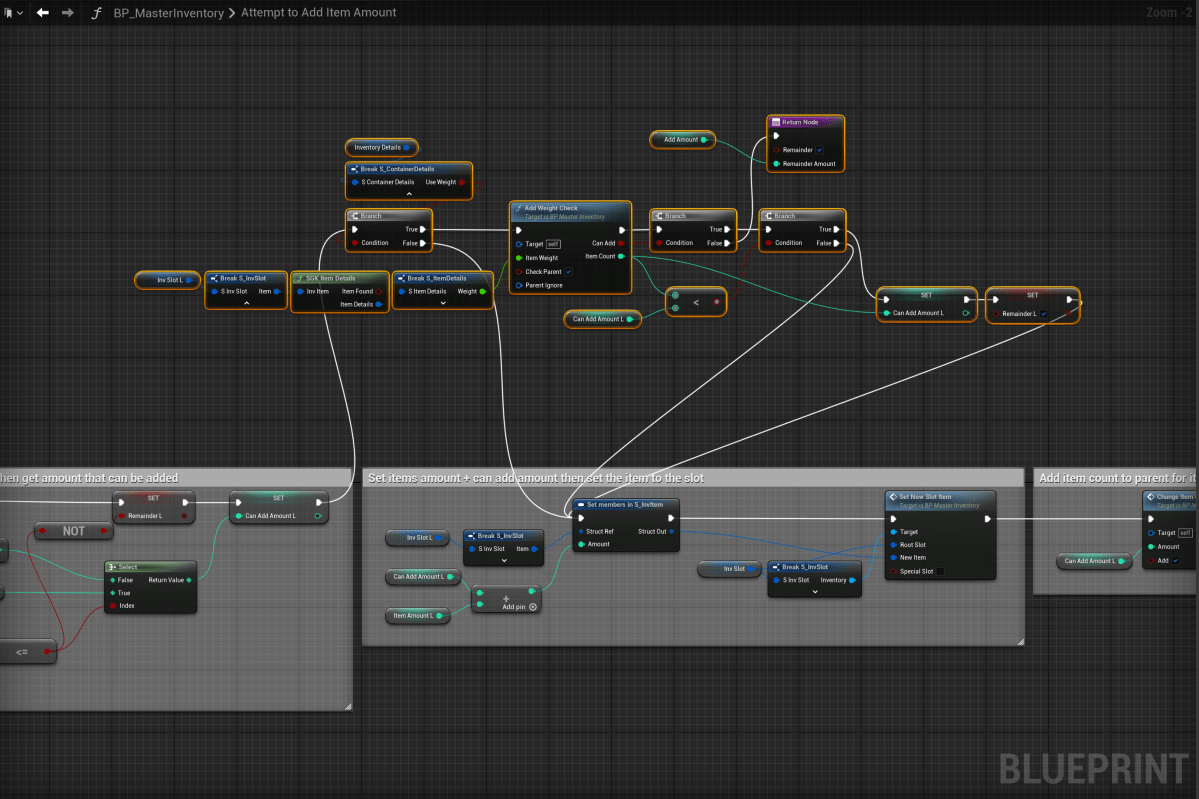 SGK V2 – Fixed Stacks Exceeding Container Max Weight Open the BP_MasterInventory then open the Attempt to Add Item Amount function, then add the highlighted nodes shown in the image below.