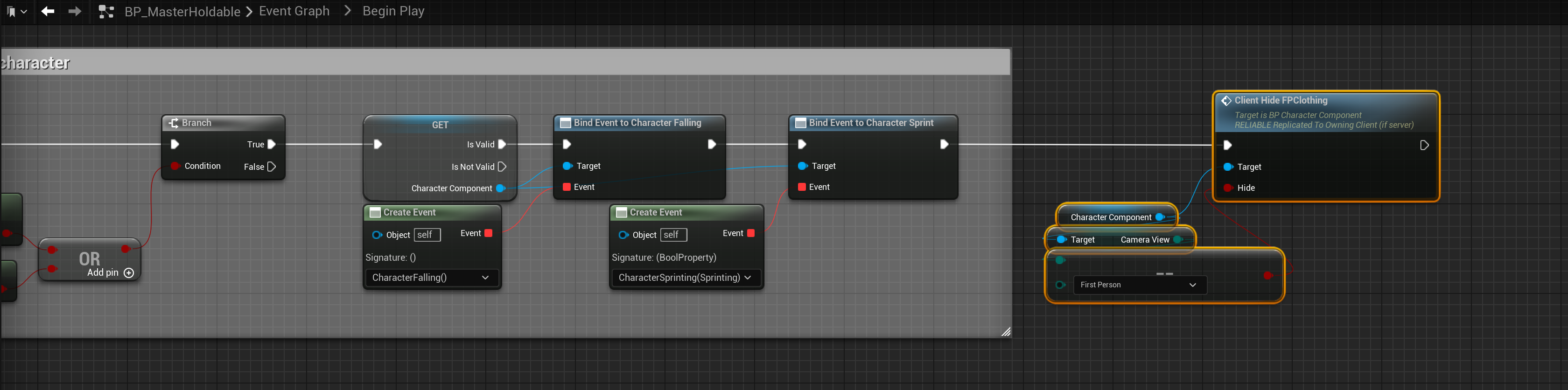 Then go to the BP_MasterHoldable and open the BeginPlay collapsed node, then add the highlighted nodes shown in the image below.