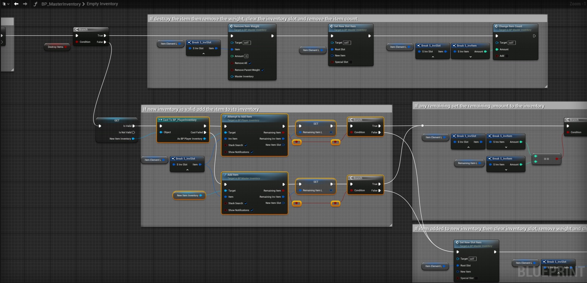 Next go to the BP_MasterInventory then open the Empty Inventory function and copy the images below.