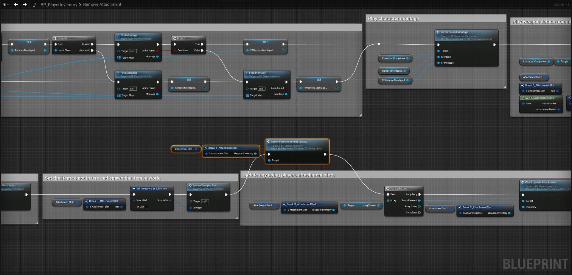 SGK V2 – Fixed Weapon Ammo Count Not Updating On Attachment Drop Open the BP_PlayerInventory and add the higlighted nodes in the image below, location at the top of the screenshot.