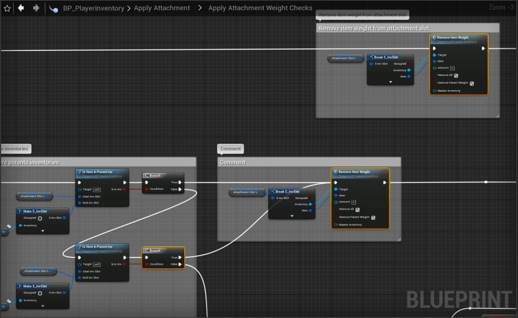 SGK V2 – Fixed weapon attachment weight issue Copy the video below, location at the top of the video. Set the inputs on the Remove Item Weight nodes shown in the image below and connect the nodes up like shown in the image.