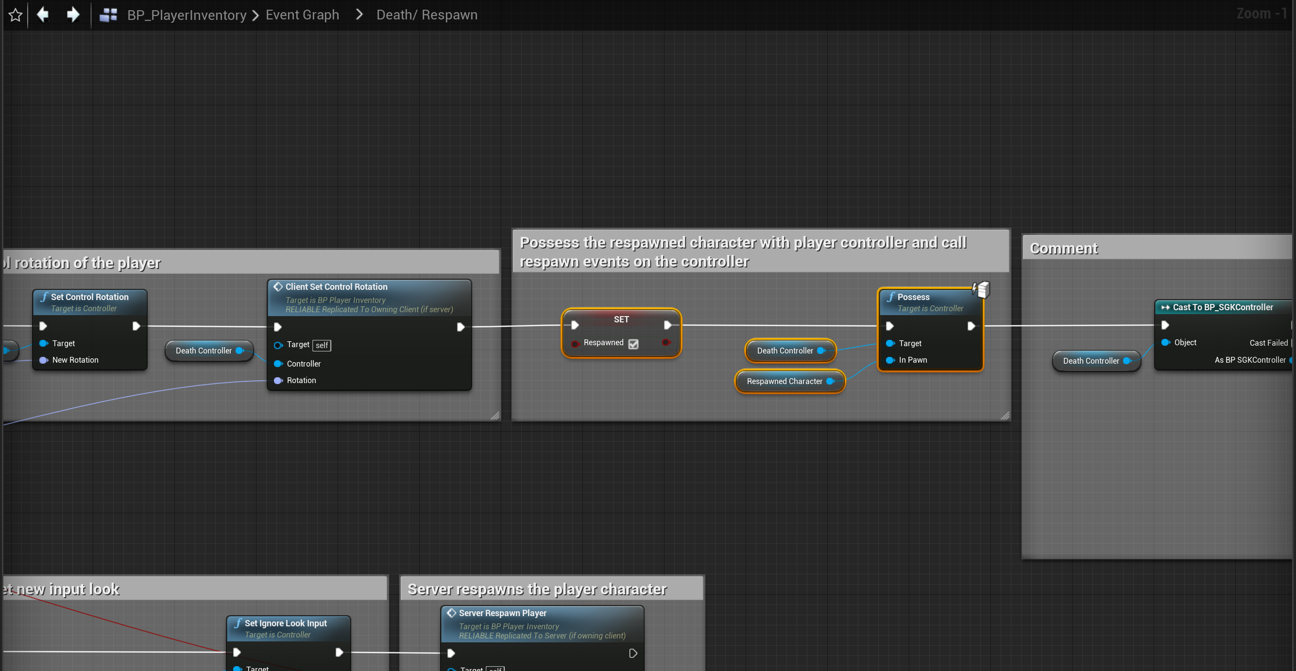 SGK V2 – Minor Changes to Respawn/Death code Add the highlighted nodes shown in the image below, location at the top of the image.