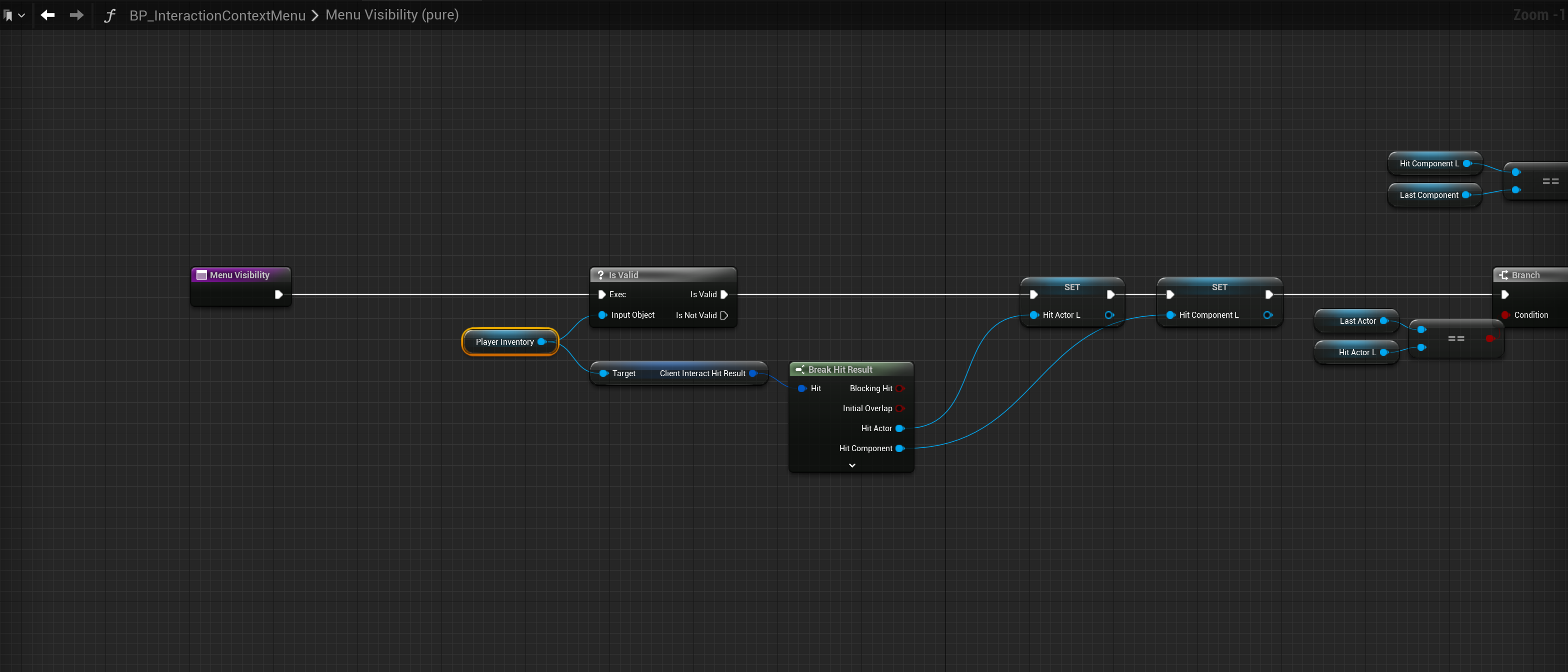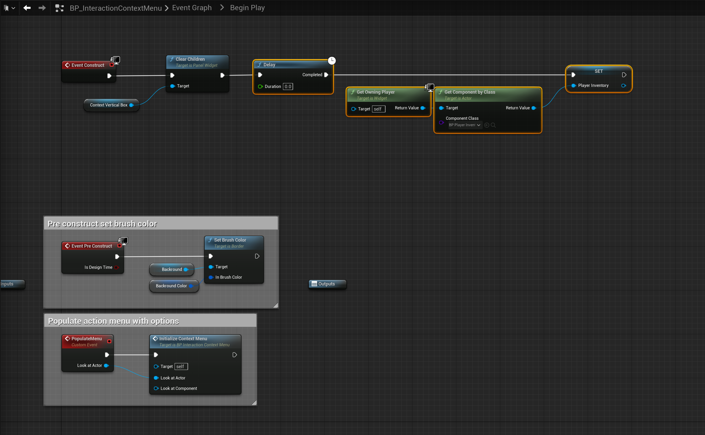 Go to the BP_InteractionContextMenu widget and create a new variable called PlayerInventory and set its type to BP_PlayerInventory.
