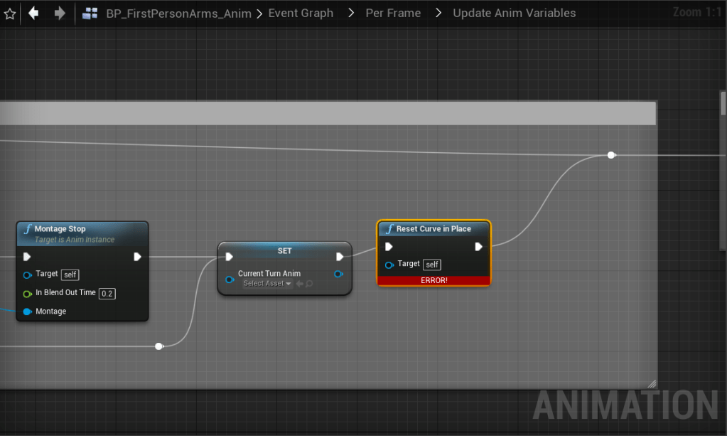 SGK V2 – Removed un used code from first person anim bp Delete the highlighted node shown below. Then compile, you will get an error, delete the node shown below to fix it and reconnect the exec pin like the image below.