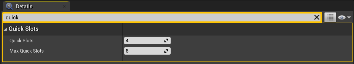 To change the starting quick slot amount go to the BP_PlayerInventory and then go to the Class Defaults and search for Quick Slots.
