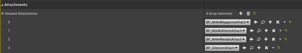 Allowed Attachments (This is the attachment blueprints that can be attached to the weapon).