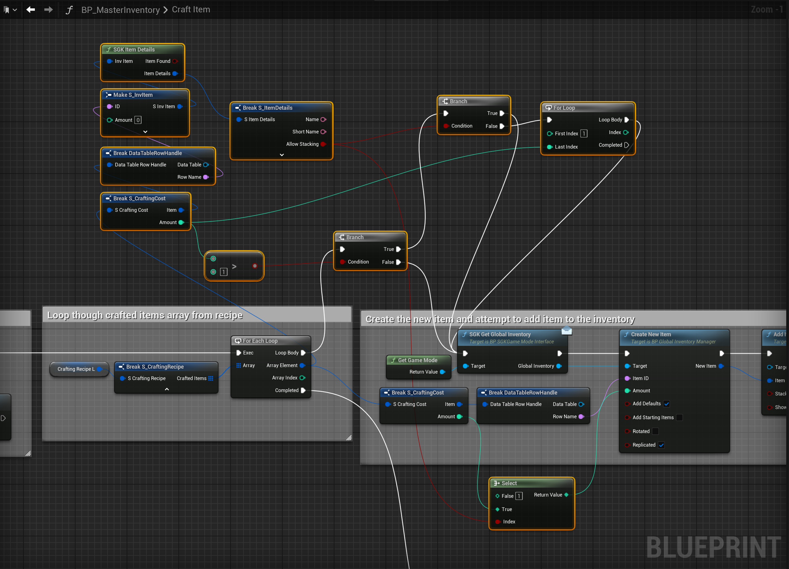 SGKV2 – Fixed Non Stack Items Stacking When Crafting Go to the BP_MasterInventory then open the CraftItem function and add the highlighted nodes shown below.
