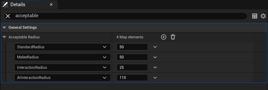 The new Acceptable Radius settings allow you to control at what distance away your AI stops from its move to target. This can be useful for large characters when attacking or using an interaction point.
