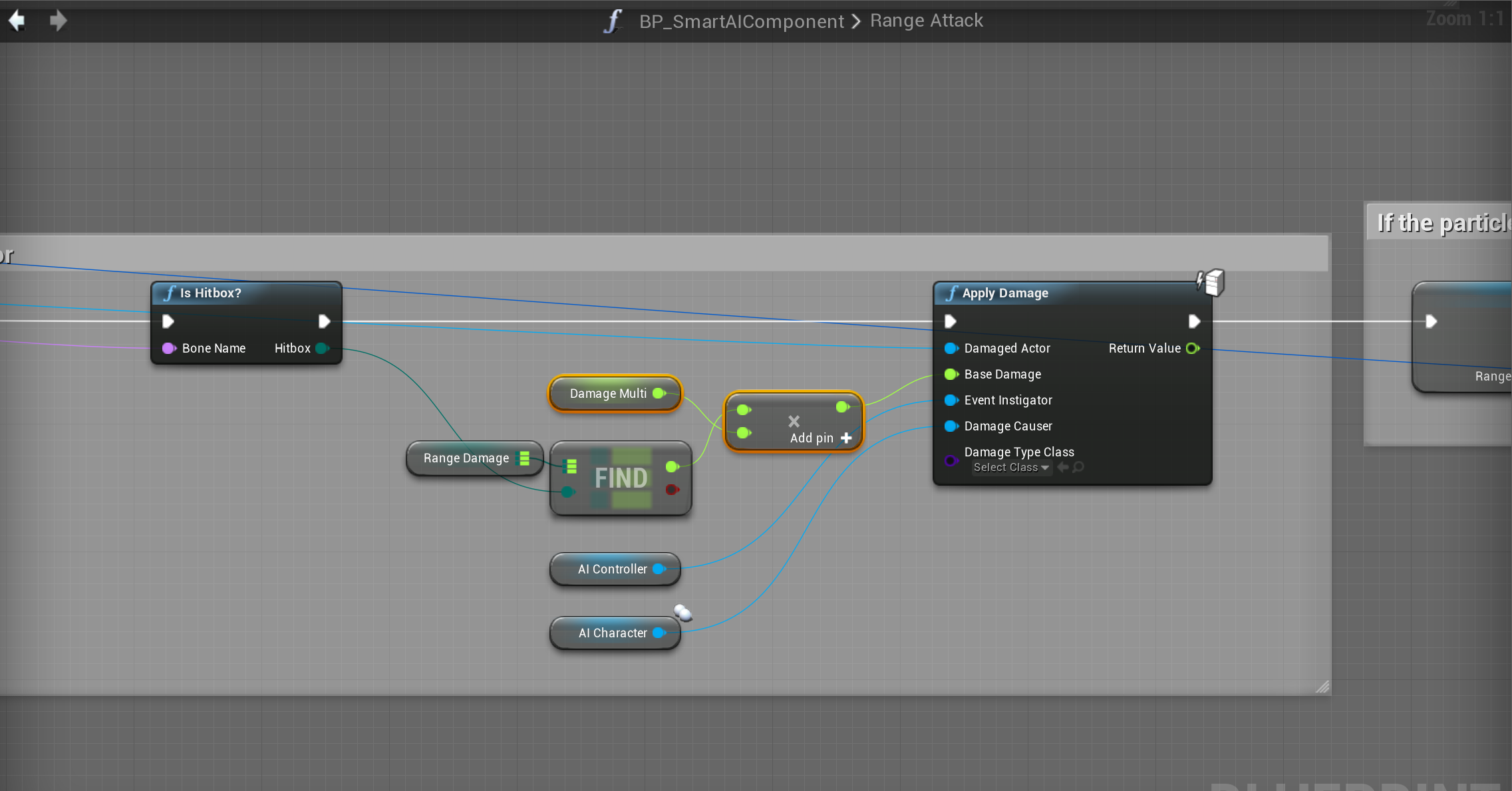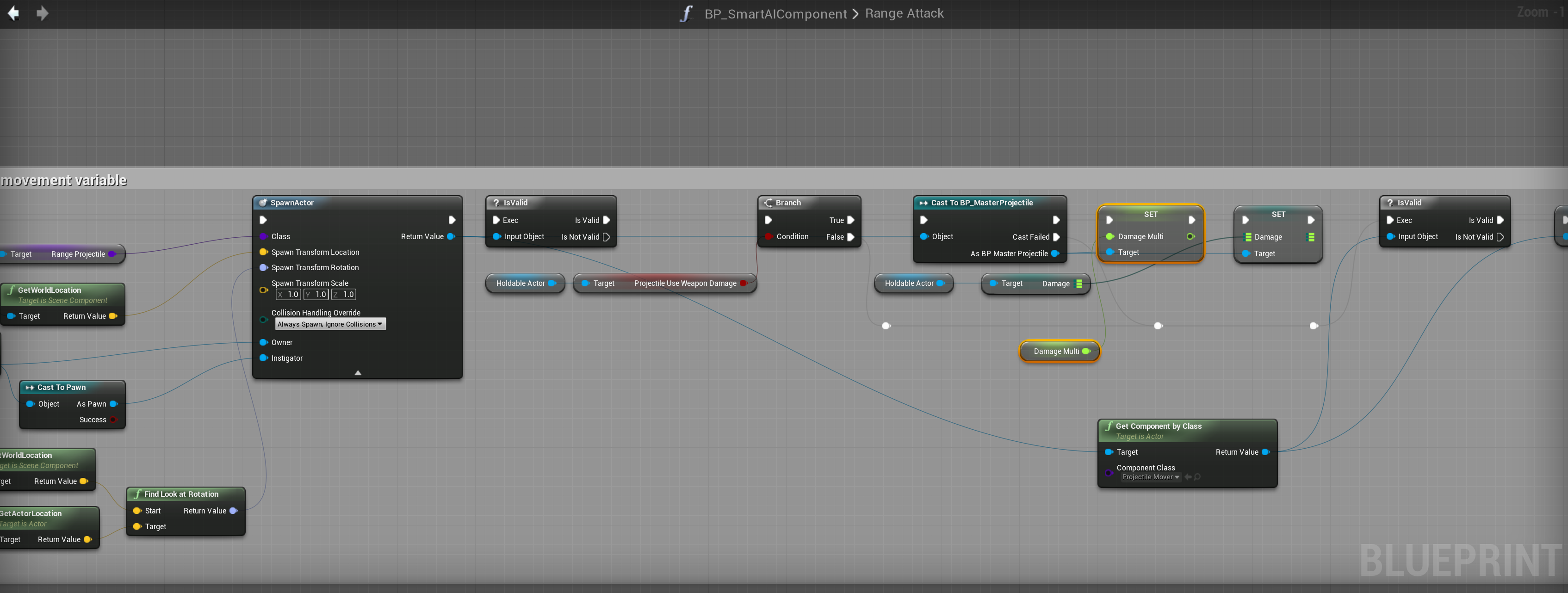 Next copy the image below adding in the highlighted nodes, locations at the tops of the screenshots. Note there are 2 places in the Range Attack function this must be done, that is why there are 2 images of that function.