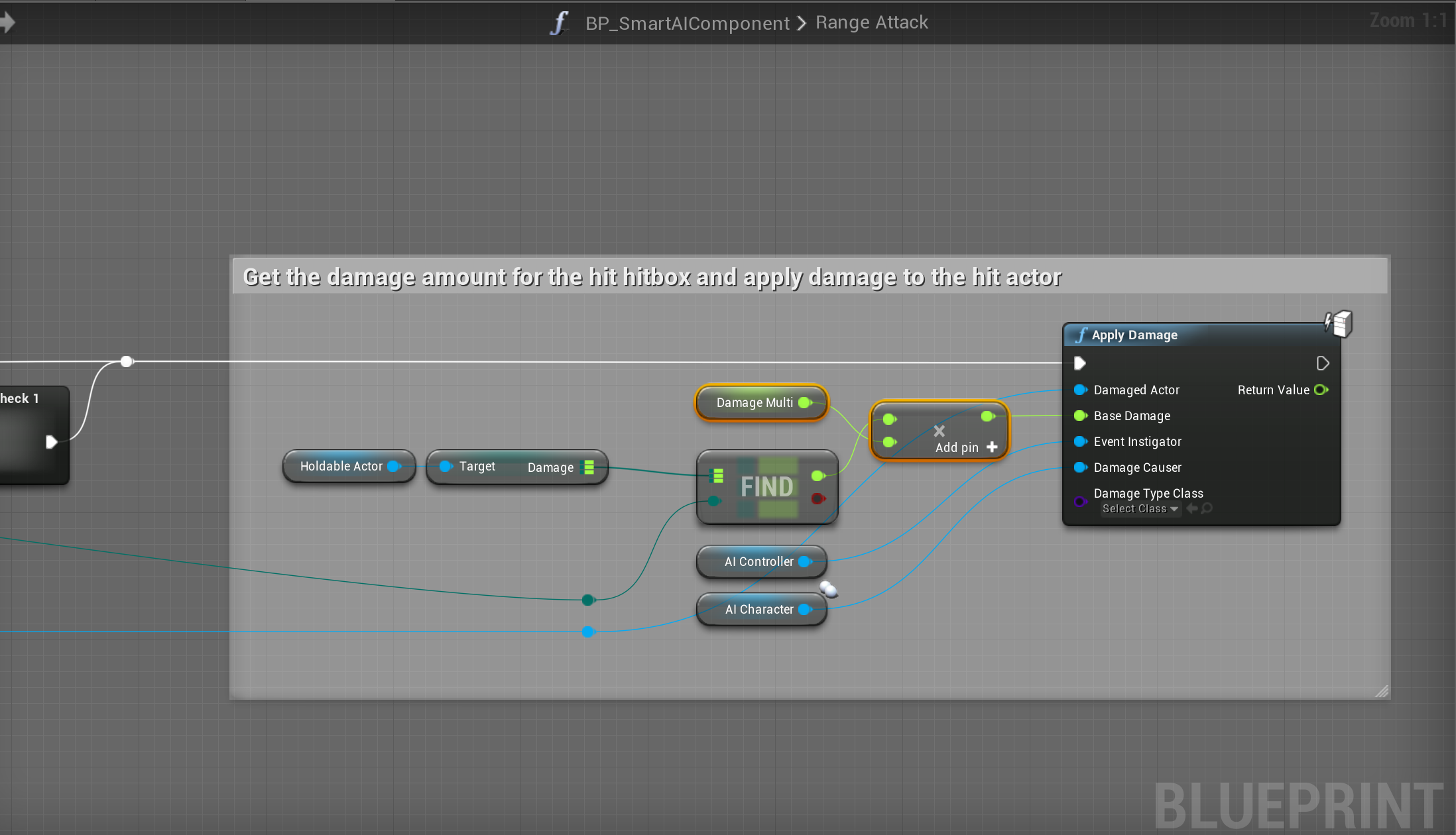 Next in the BP_SmartAIComponent create a new function called Change Damage Multi and add a Float input called Change Amount then copy the image below.