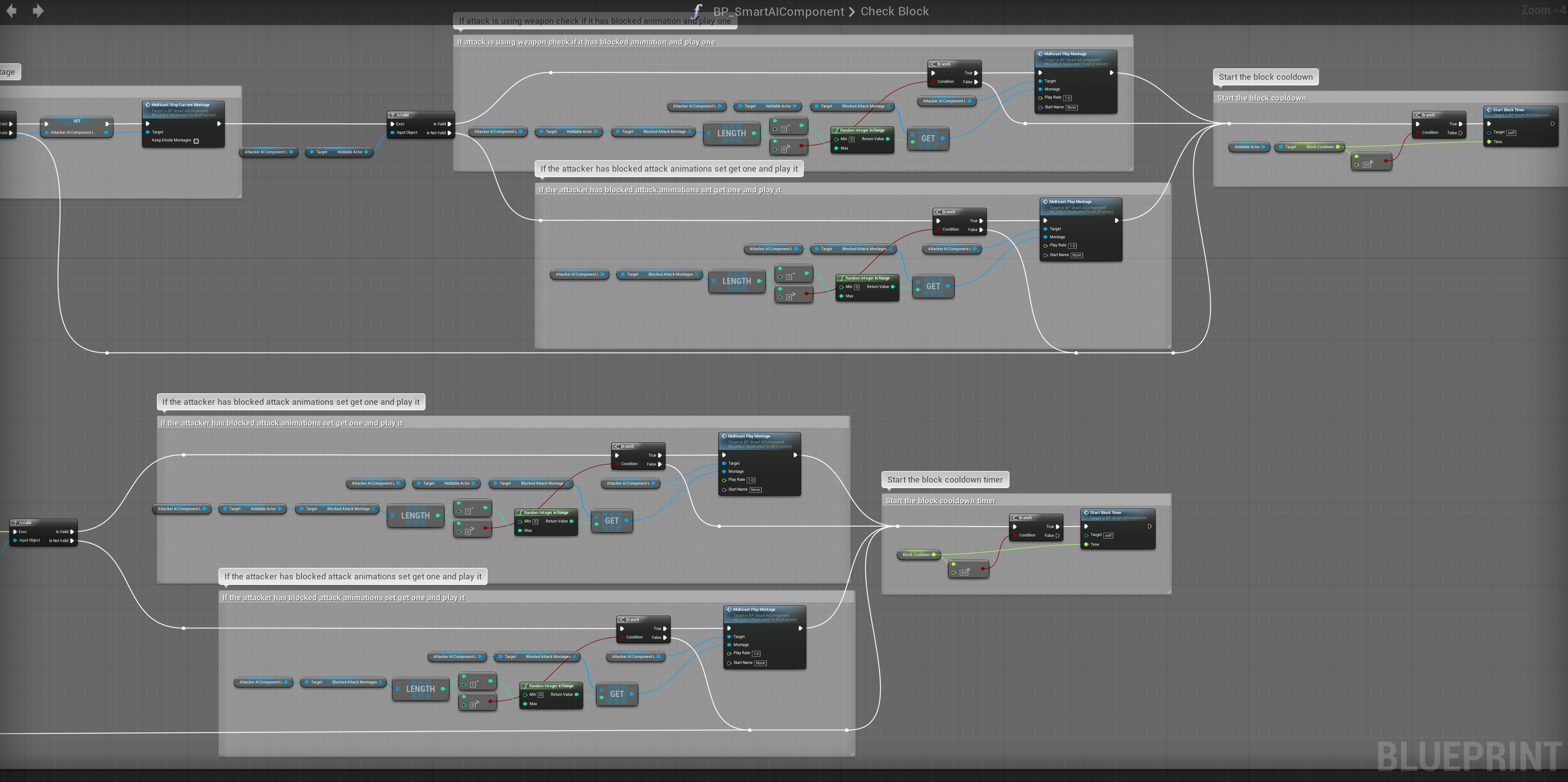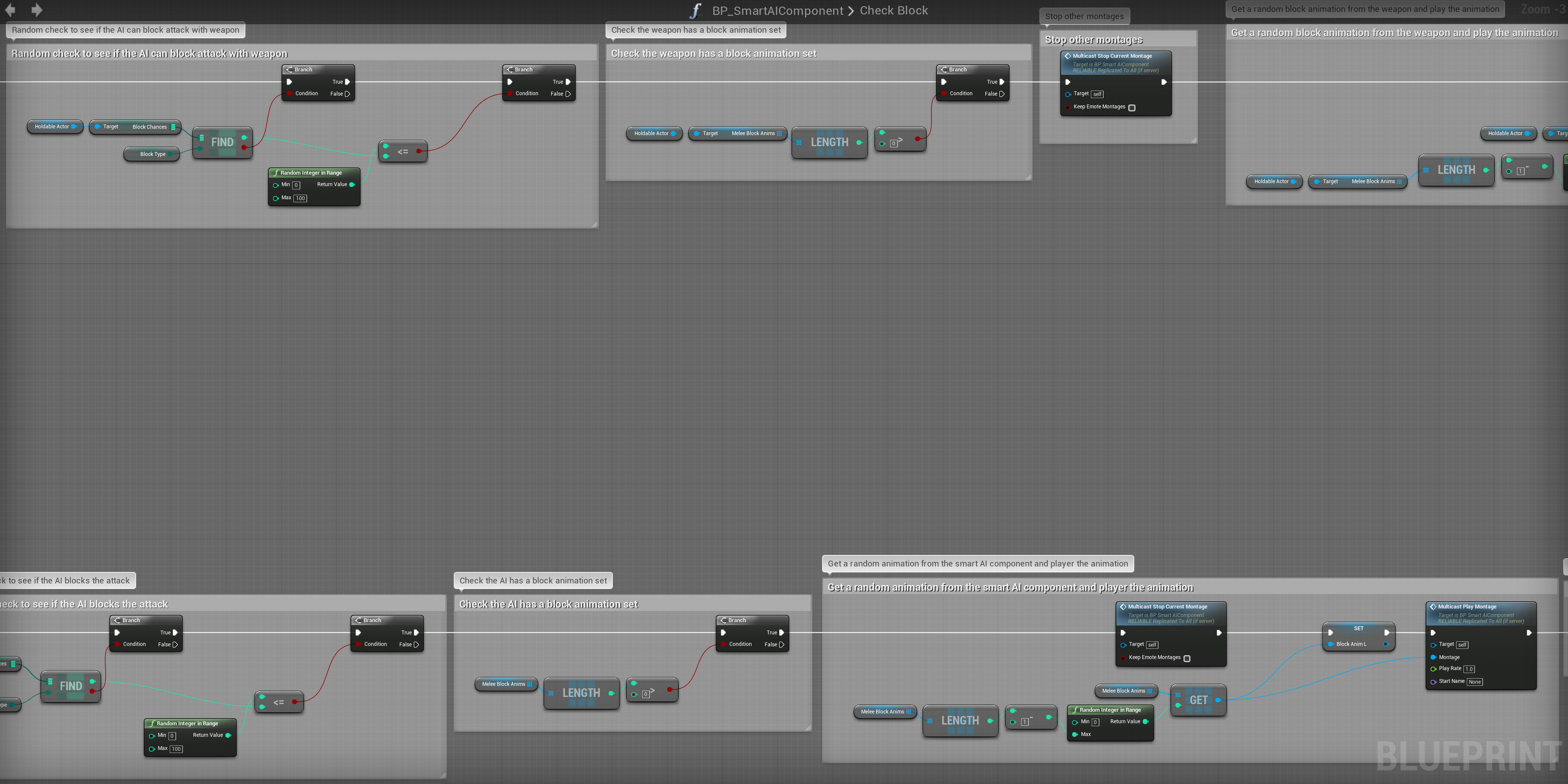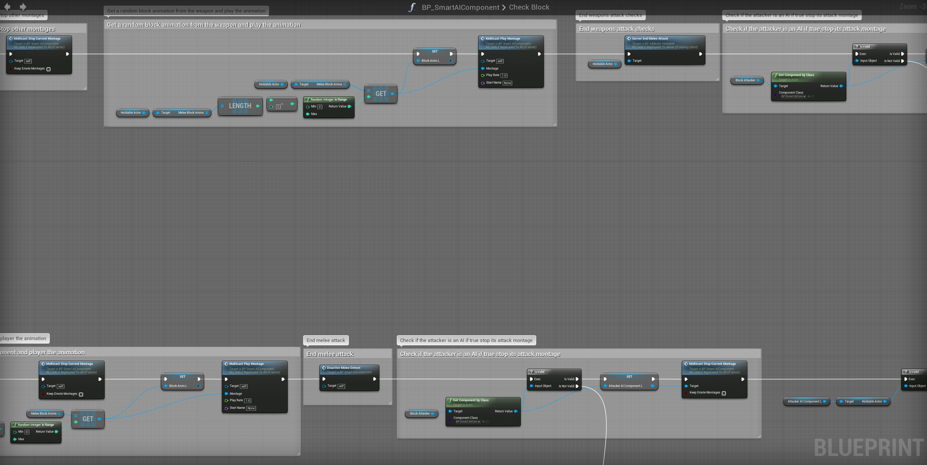 Now the block system is set up, you can now go to the Smart AI component and set the A_SwordBlock_01_Montages in the Melee Block Montages if you want to use it and you can do the same for your holdables.