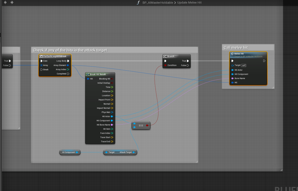 Next go to the Update Melee Hit function and connect the Array Element to the Hit pin like shown in the image below.