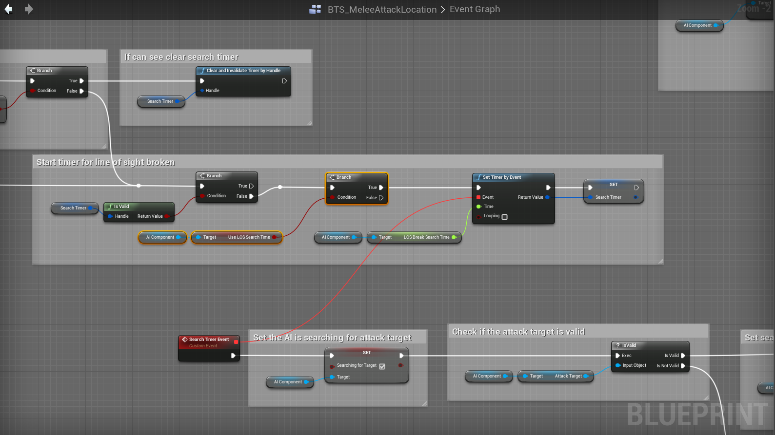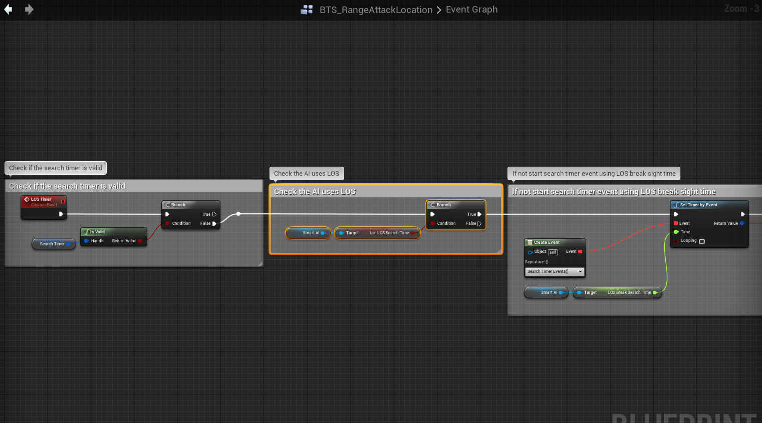 Go to the BP_SmartAIComponent and create a new Bool variable and call it Use LOS Search Time. The Default setting is True (Ticked on).