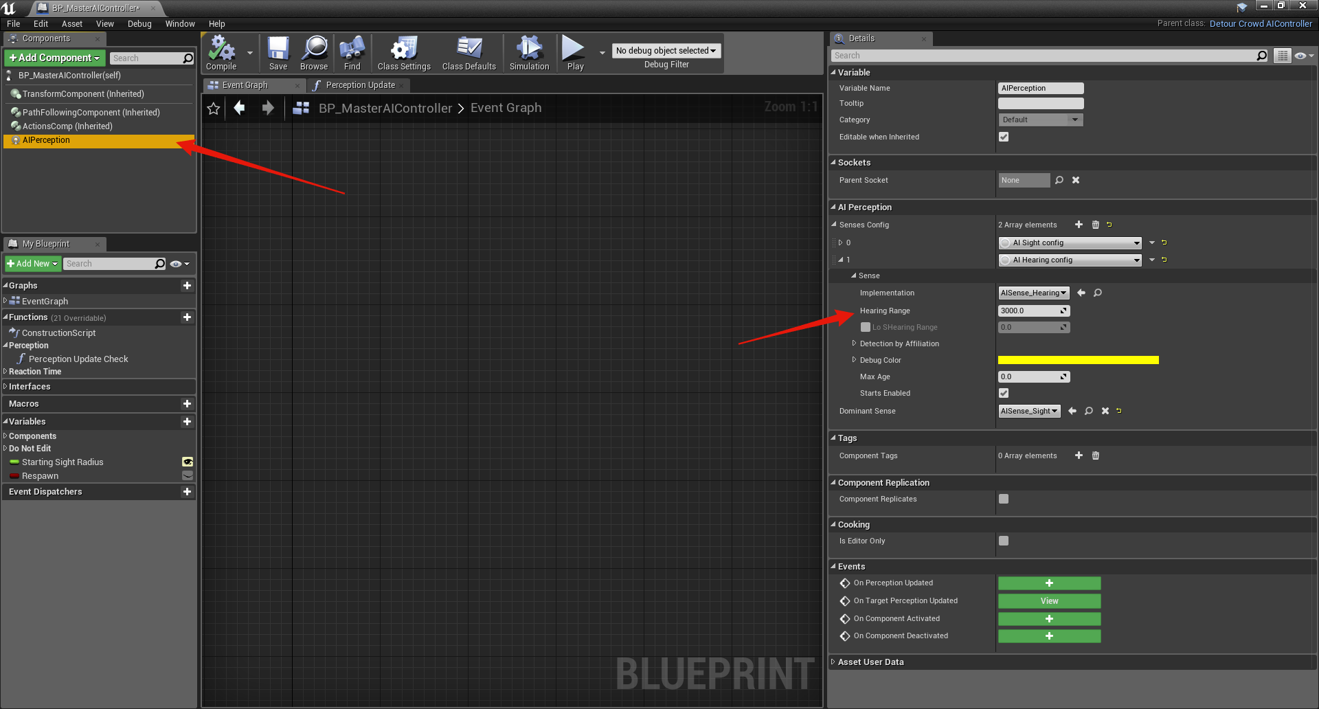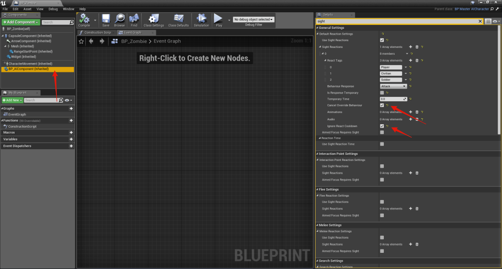 Smart AI – Changes to default settings Go to the BP_MasterAIController and copy the image below. Go to the BP_Zombie blueprint and copy the image below. If your UI doesnt look like the image click the Open Full Blueprint Editor button.