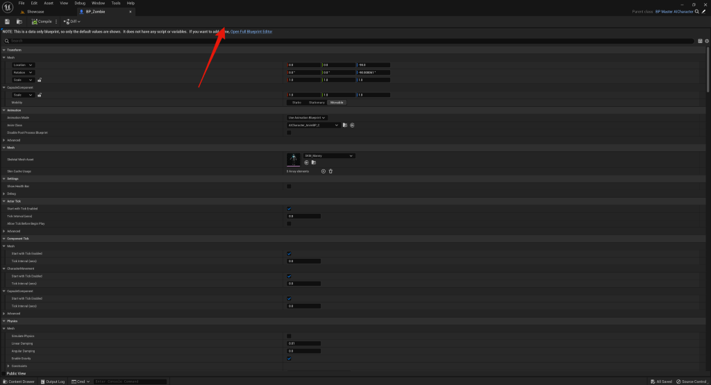 To change an AI’s unarmed animations (These are animations used when the AI is not holding a weapon) you go to the AI’s character blueprint, like the BP_Zombie for example. Then select the BP_AIComponent in the Components panel.