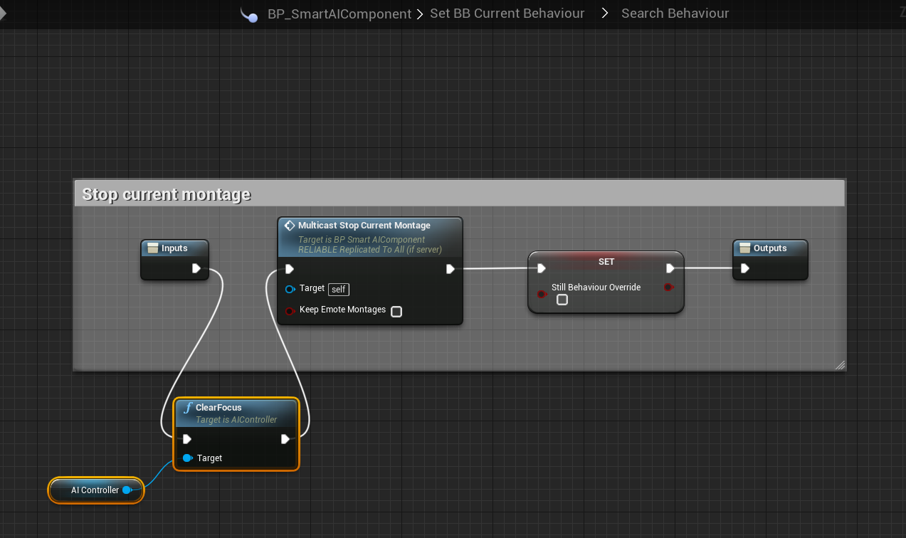 Smart AI – Fixed AI focusing on target while searching Add the highlighted nodes shown in the image below, location at the top of the image.