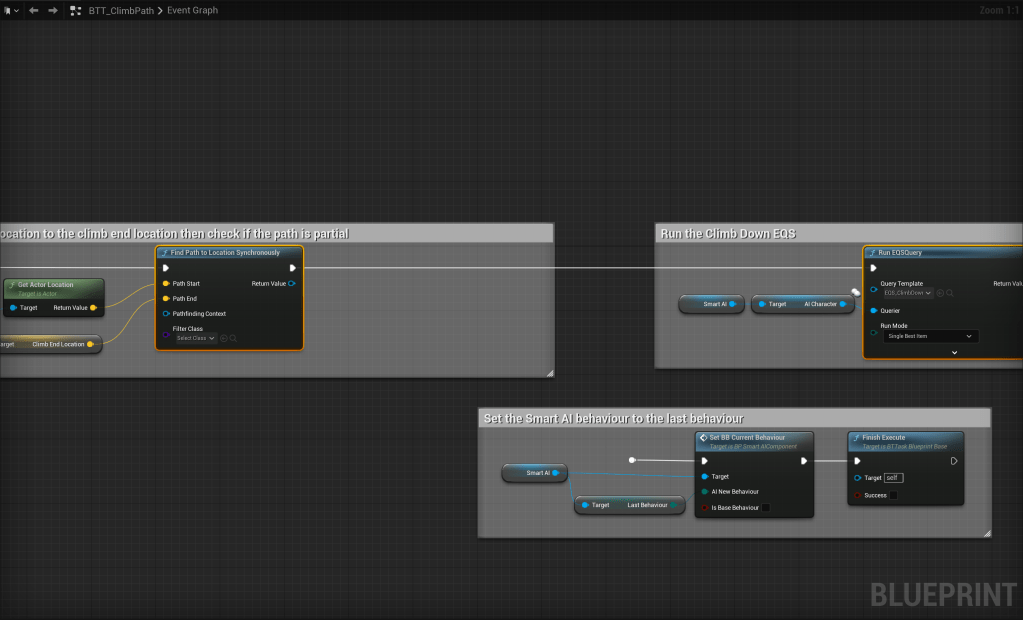 Smart AI – Fixed AI jumping in some situations when it should climb Add the highlighted nodes shown in the image below, location at the top of the image. Go to the BTT_ClimbPath in the Content Browser and copy the image shown below, you can also delete the disconnected nodes shown in the image.