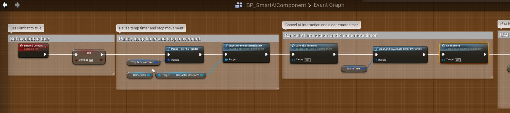 Smart AI – Fixed attacking while using emote prop Add the highlighted nodes shown in image below, location at the top of the screenshot.