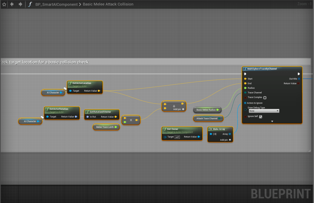 Smart AI – Fixed basic melee detect not hitting players Add the highlighted nodes shown in the image below, location at the top of the image.